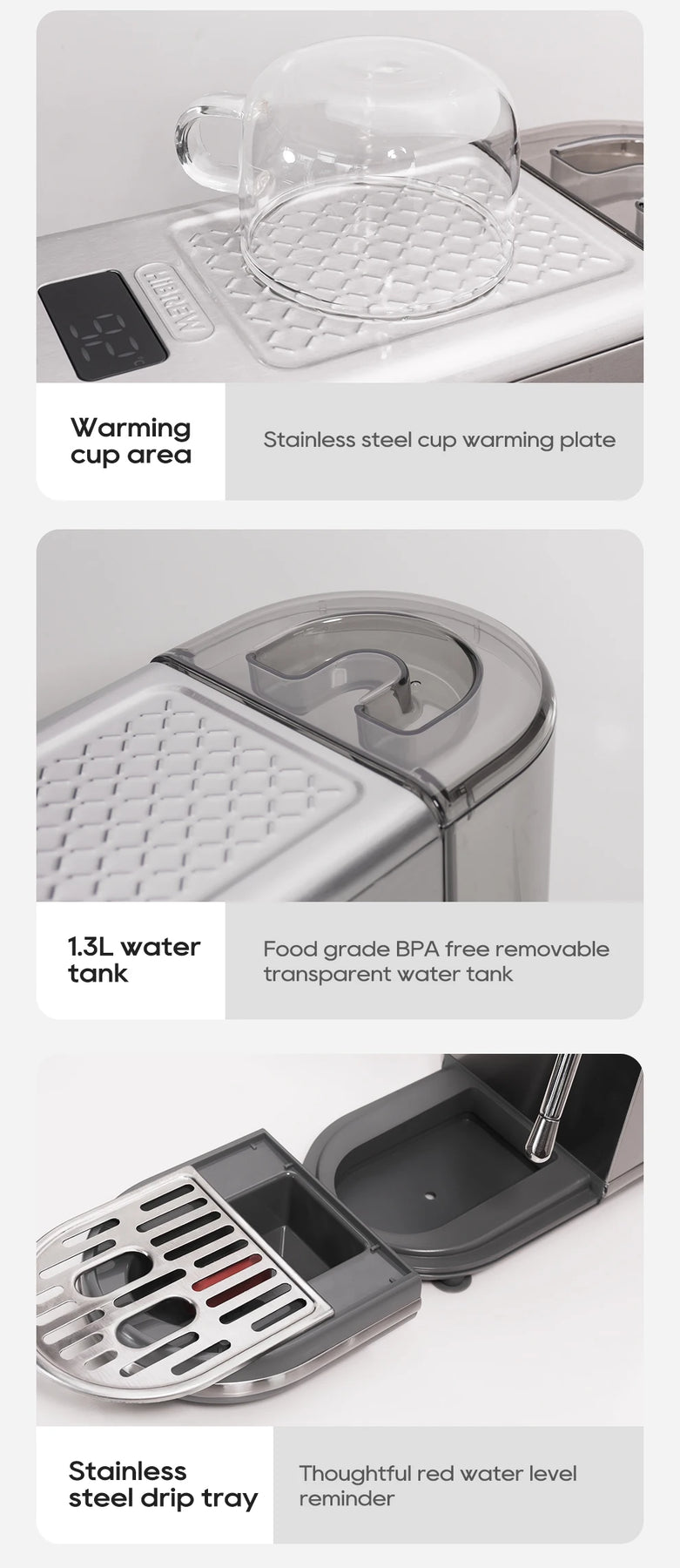 Adjustable function: Coffee extraction temperature,Steam temperature,Pre-brewing time,Coffee volume