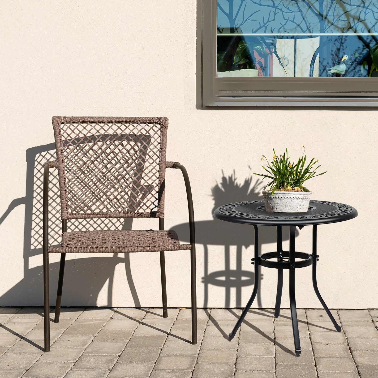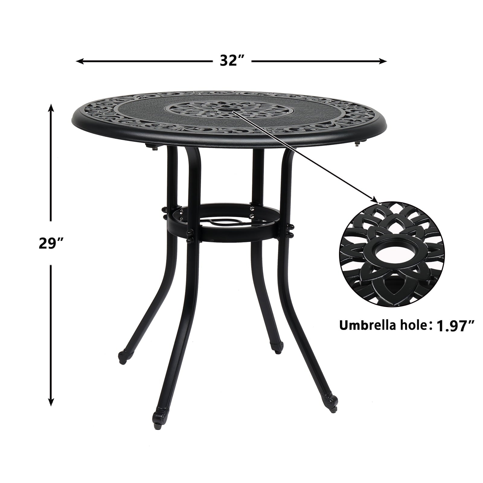 32' cast aluminum bistro round dining table. It is perfect in the indoor,outdoor.It will enhance your outdoor living space!