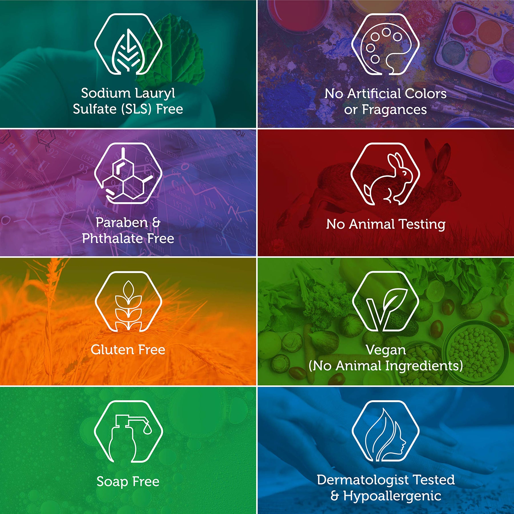 - FREE FROM COMMON CONCERNS: No parabens, sodium laurel sulfate (SLS), phthalates, petroleum, silicones, artificial fragrances or artificial colors, yet there is no compromise on sensory pleasure