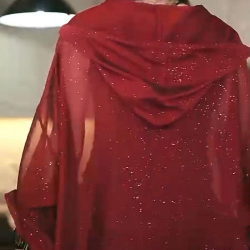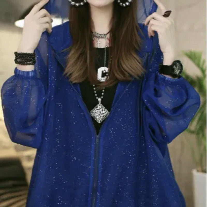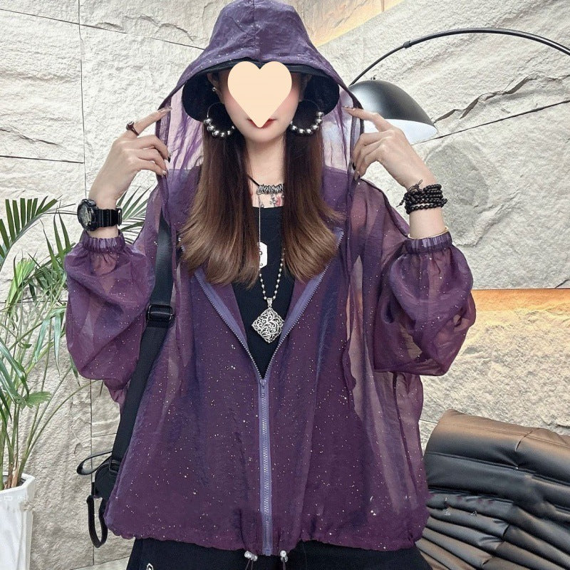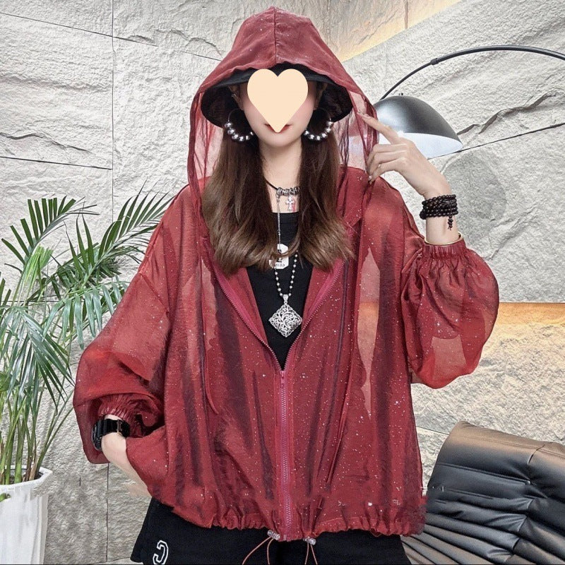 Hooded Drawstring Sun Protection Clothing For Women See-through All-matching