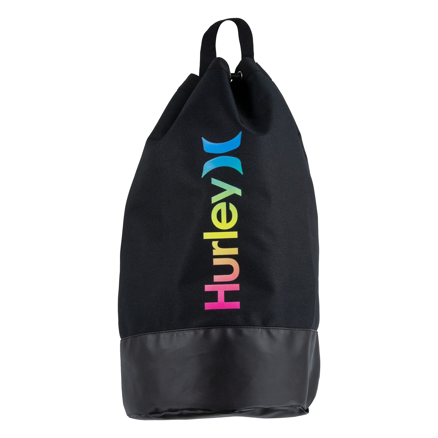 This Hurley Beach Bag is constructed from a polyester fabric with a PU coating, making it ideal for wet and sandy days. Features adjustable shoulder straps and a Hurley branding.