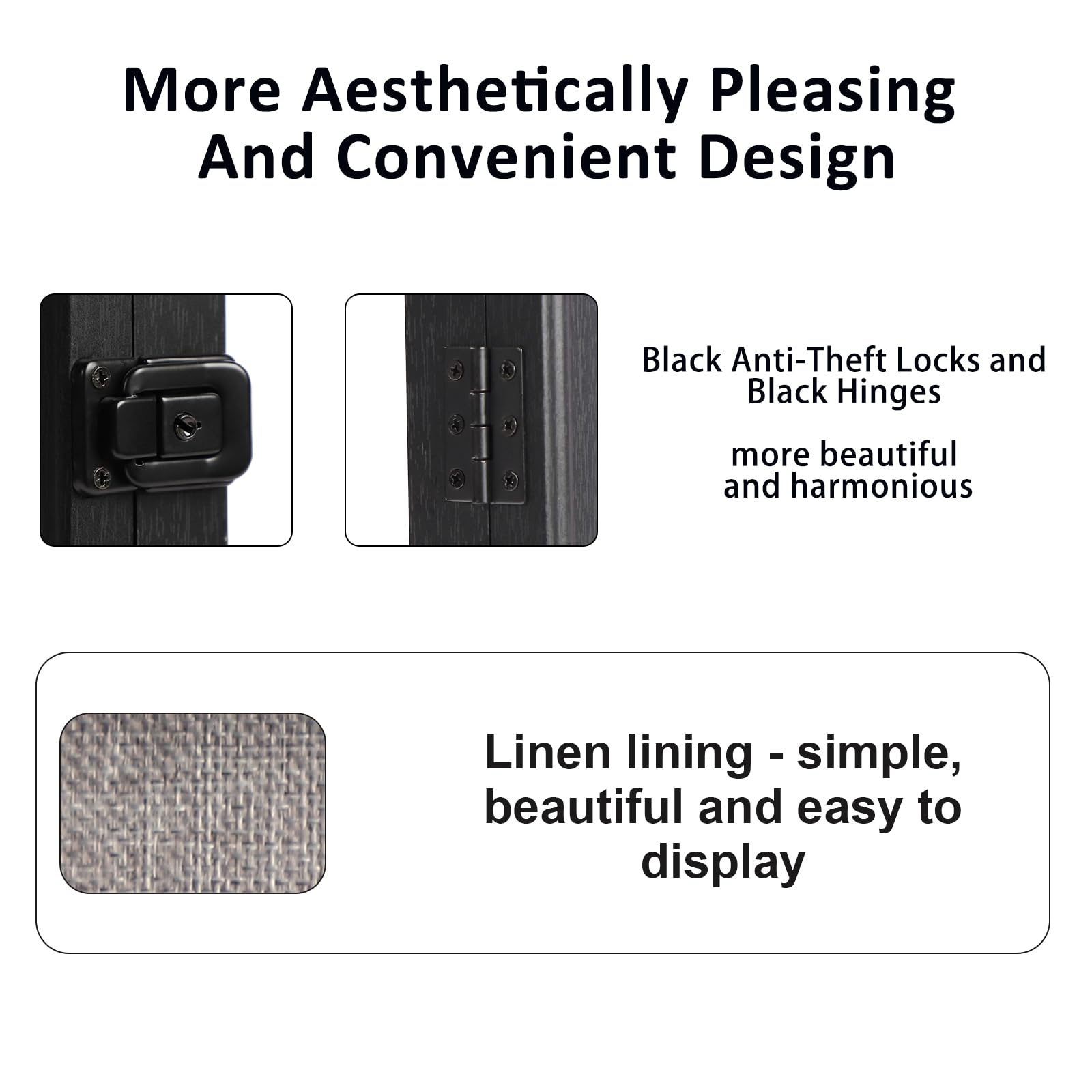 - [HIGH QUALITY WITH RELIABLE FEATURE] - Made out of wood with black fade-resistant matte finish, IHEIPYE Jersey Frame is durable enough for a long-lasting working life. Shatter Proof 92% transparency and 98% UV protection acrylic panel,linen lining lining along with two black metal anti-theft locks can well protect your cherished sports memorabilia or collectibles. Customer-friendly accessories and visual user manual are packed all together with our sincere service!