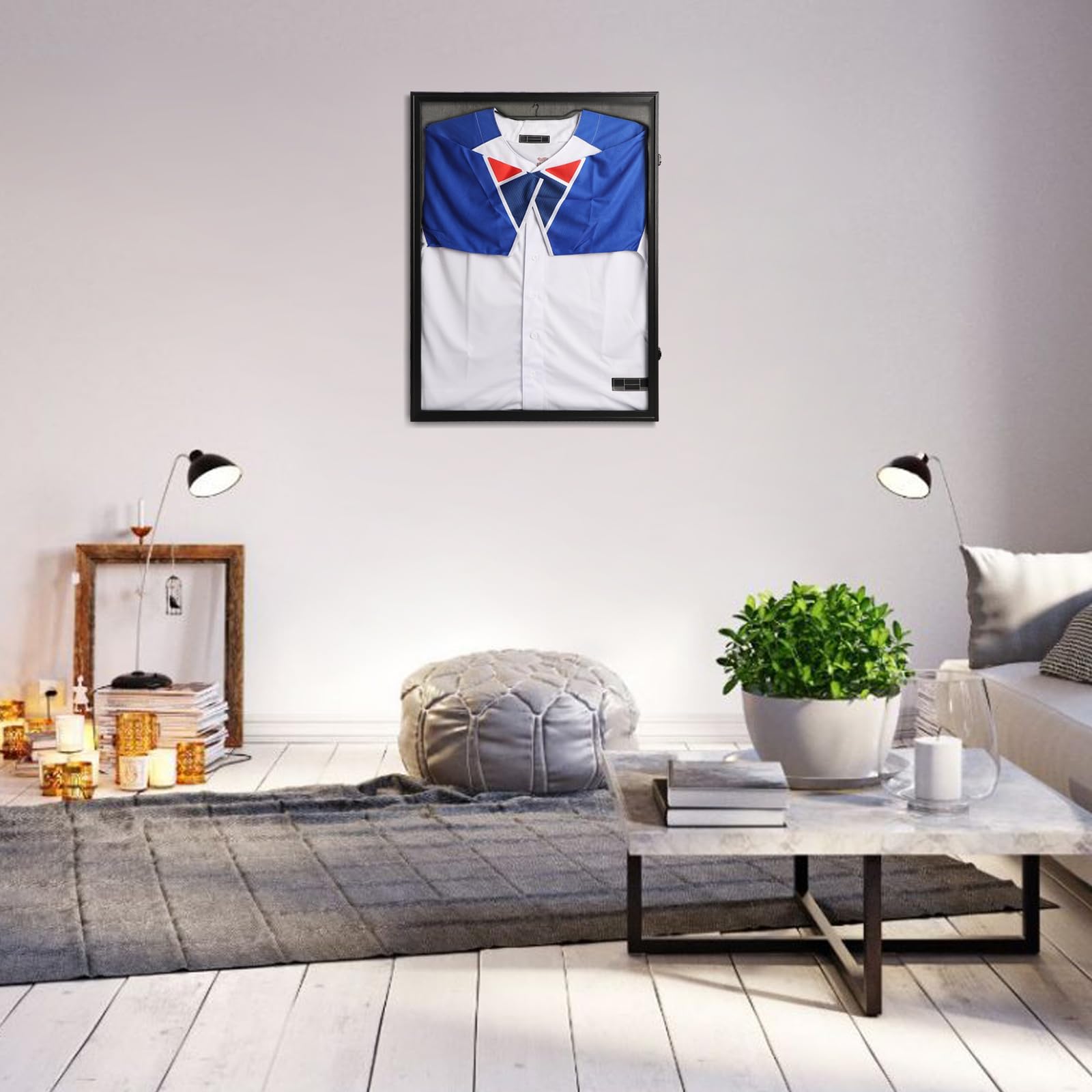 - [ONE SIZE FITS ALL SPORTS JERSEY] - Large size display frame 31.25' x 23.25' x 1.5' fits most sports jerseys such as Baseball, Basketball, Football, Soccer, Hockey etc. Make it a perfect gift for sports fans! It can also be used as a shadow box to display military uniform, graduation memorabilia and other cherish memories.