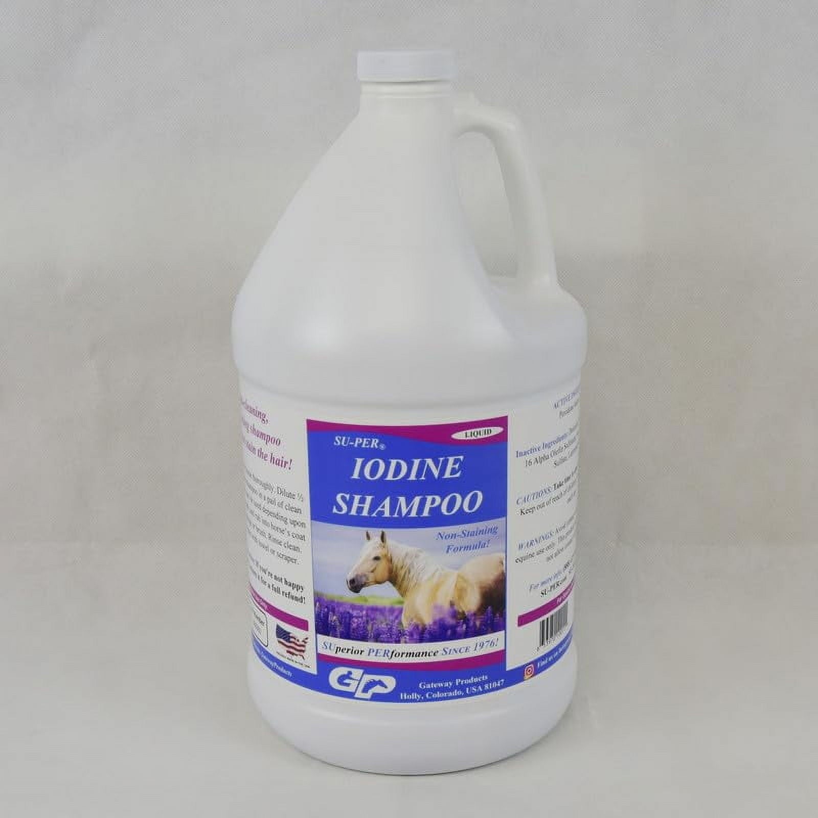 - EQUINE SHAMPOO: SU-PER Iodine Shampoo is a deep-cleaning, non-staining, pH-balanced shampoo that can be used on a regular basis to help prevent skin conditions that can develop in horses, particularly in the warmer months or during training.