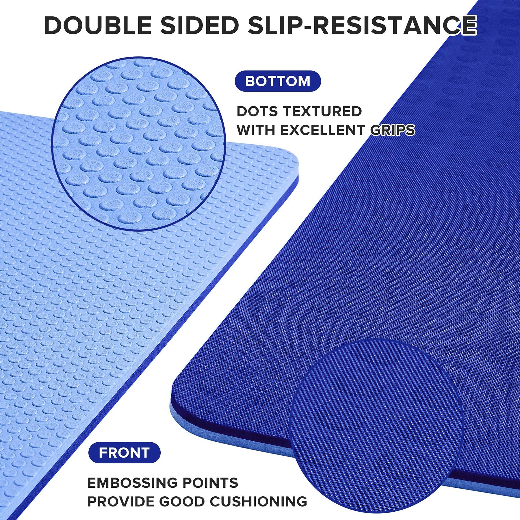 - 💦【NON SLIP ON DOUBLE SIDE】The 369 cushioning anti-slip modules on the surface of this exercise yoga mat can provide strong friction for the body, and the bottom has a dot suction cup texture, which provides excellent grip. Even if you are sweating profusely, you don’t have to worry about slipping, which greatly enhances safety.Best suitable for any occassions to use, such as wood floor, tile floor, cement,domitory,home or studio practice.