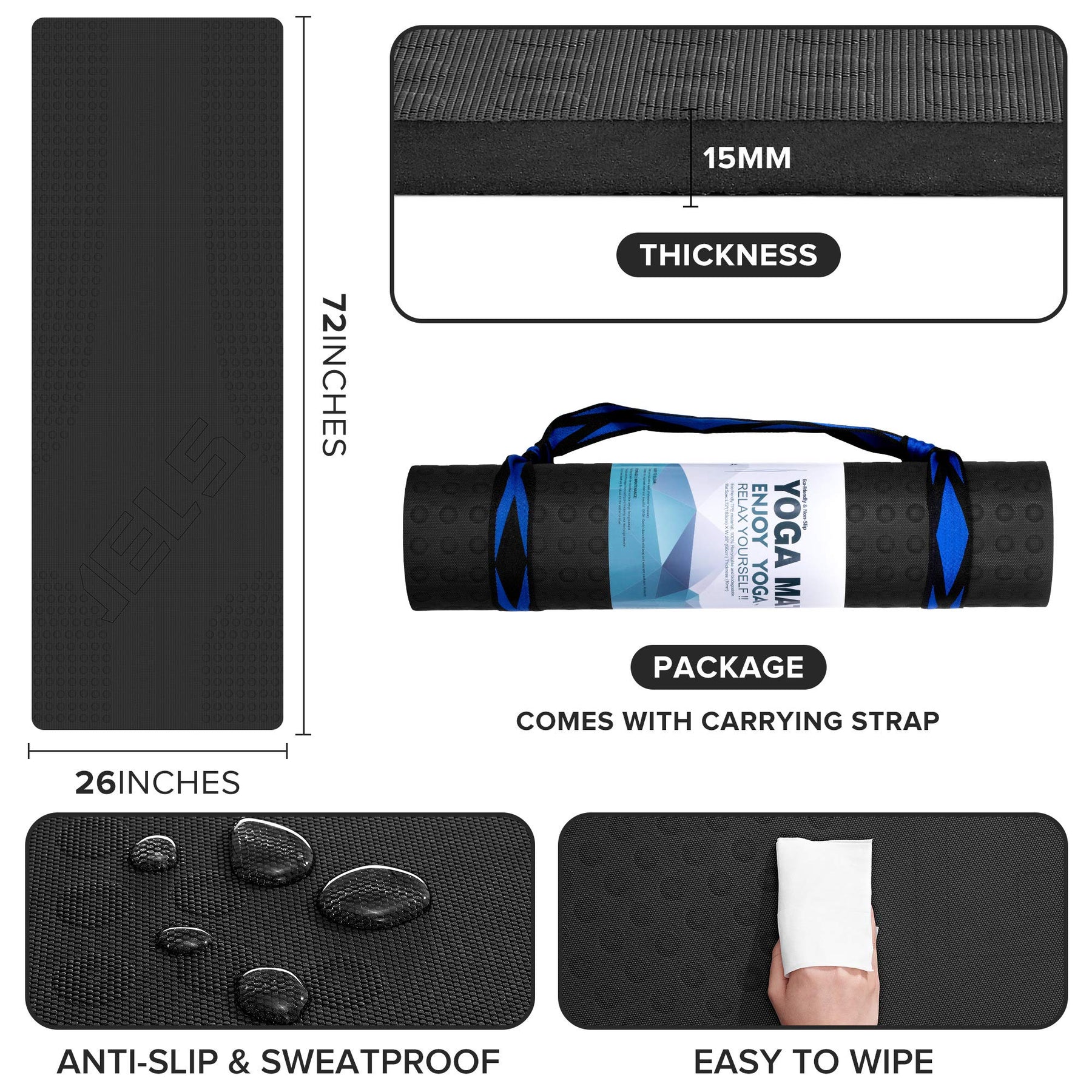 PERFECT PERFORMANCE: 15mm in thickness offers the most comfortable experience for all level yogis.JELSYOG yoga mat are guaranteed to provide the optimal level of cushion and protection for your joints and knees while still allowing you to grip the floor for balance.