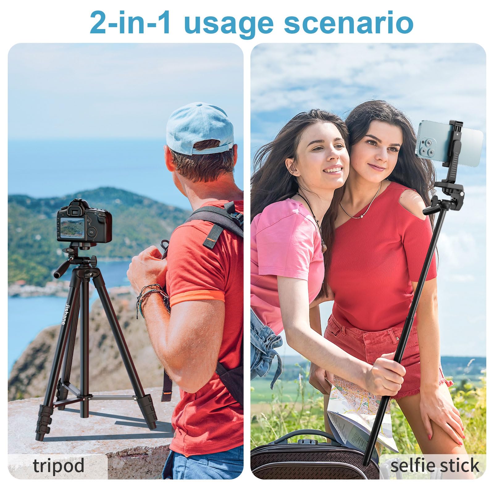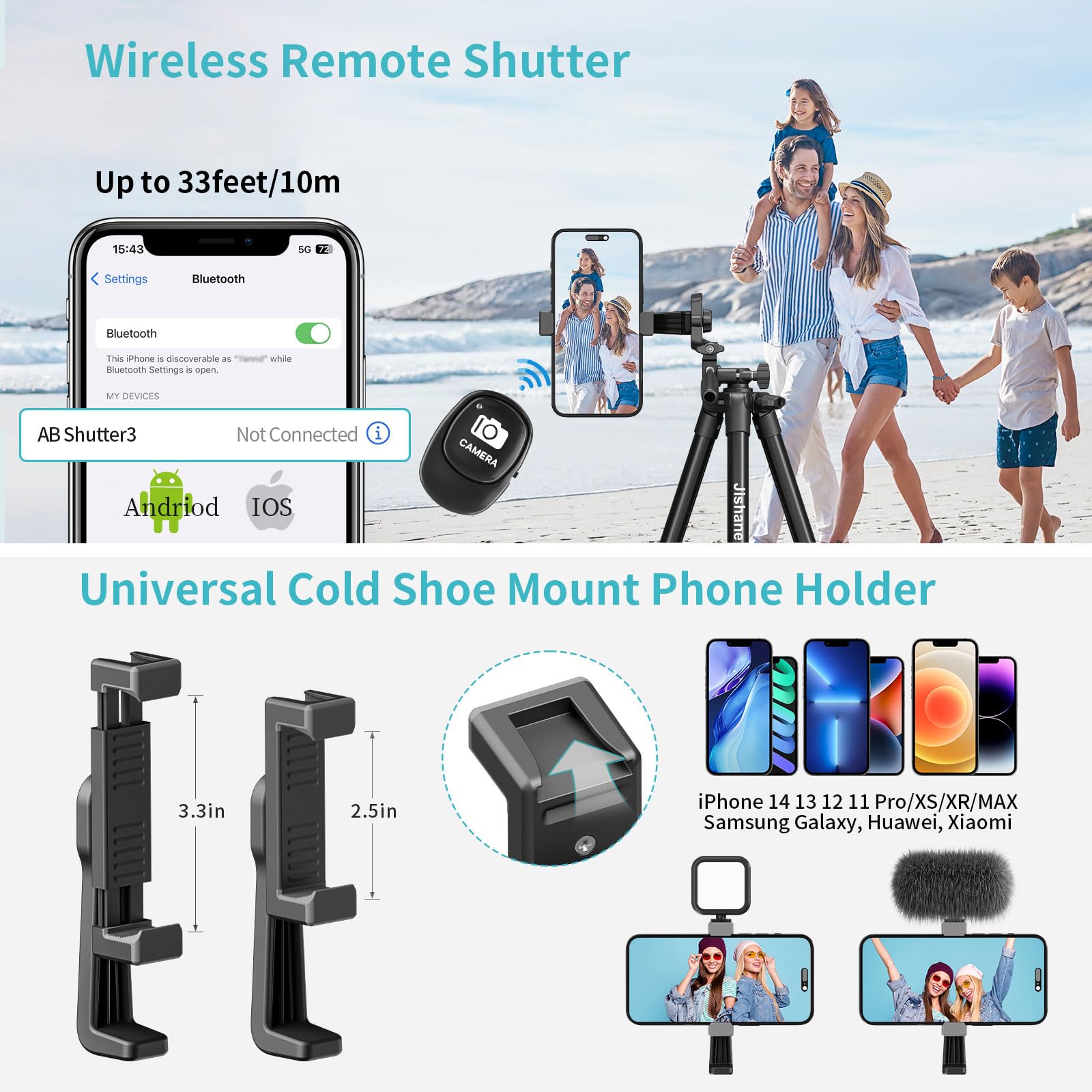 Jishane 71" Camera Tripod Phone Tripod with Wireless Remote Phone Holder and Carry Bag, Aluminum Lightweight Camera Tripod Stand Compatible with Smartphone Cameras, Max Load 6.6 lbs
