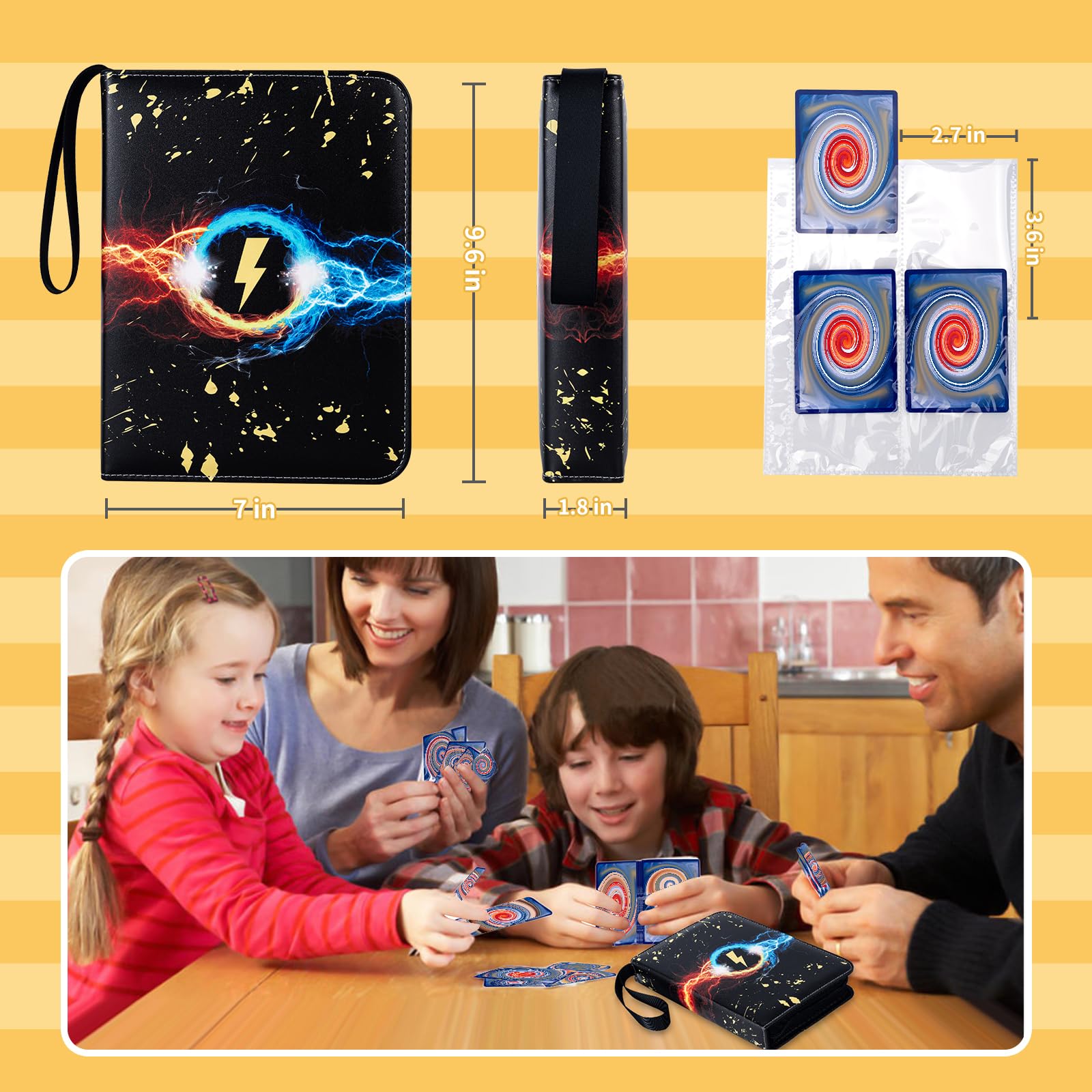 - ⚡【Universal Design】Lightweight card collection binder with a premium wrist strap,size:9.7*7*2inches,easy to carry or put in backpacks and suitcases,showcasing your collection is half the fun.
