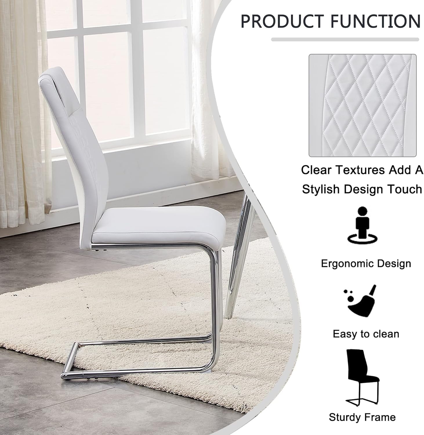 JUFU Modern White Dining Chairs Set of 4, Faux Leather High Back with Chrome Legs