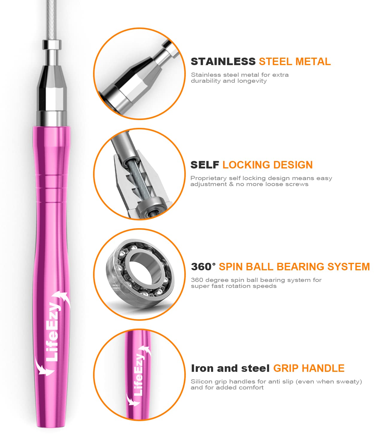 - Faster and Smoother - Premium grade 360-degree ball bearings? You are right. Our newest speed jump rope built-in with high DOUBLE-BEARING SYSTEM, it ensures stable and fast rotation, tangle-free, which brings you smooth jump exercises.