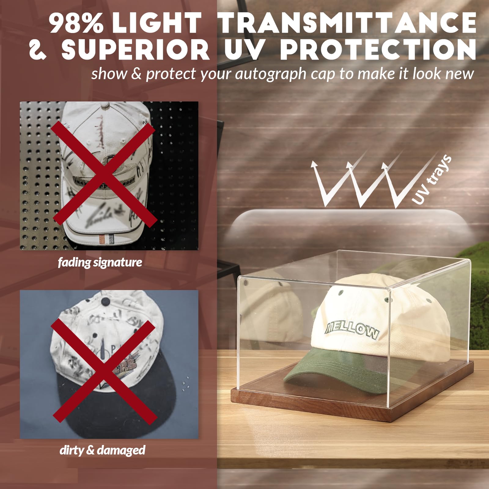 - 4️⃣[Superior UV Protection] The JupDec acrylic baseball hat display box has UV protection, protecting your collectibles against sun damage, Bid farewell to worries of color fading and material degradation, ensuring your cap retains its brilliance for years to come, no matter the lighting conditions.