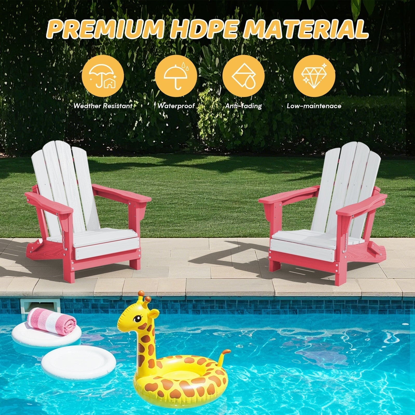 Brighten up your outdoor space with the JUSTLET Kids Foldable Adirondack Chair, designed with your child’s comfort and safety in mind. Made from premium HDPE (High-Density Polyethylene), this chair offers the look of real wood with superior durability—resistant to fading, cracking, peeling, and splintering. Its smooth, rounded edges and sturdy build ensure safe use for kids, while the foldable design makes it easy to move and store. Available in a variety of vibrant, kid-friendly colors, it’s perfect for patios, decks, lawns, gardens, and poolside fun. Whether it’s playtime or snack time outdoors, this chair delivers lasting comfort, color, and care.