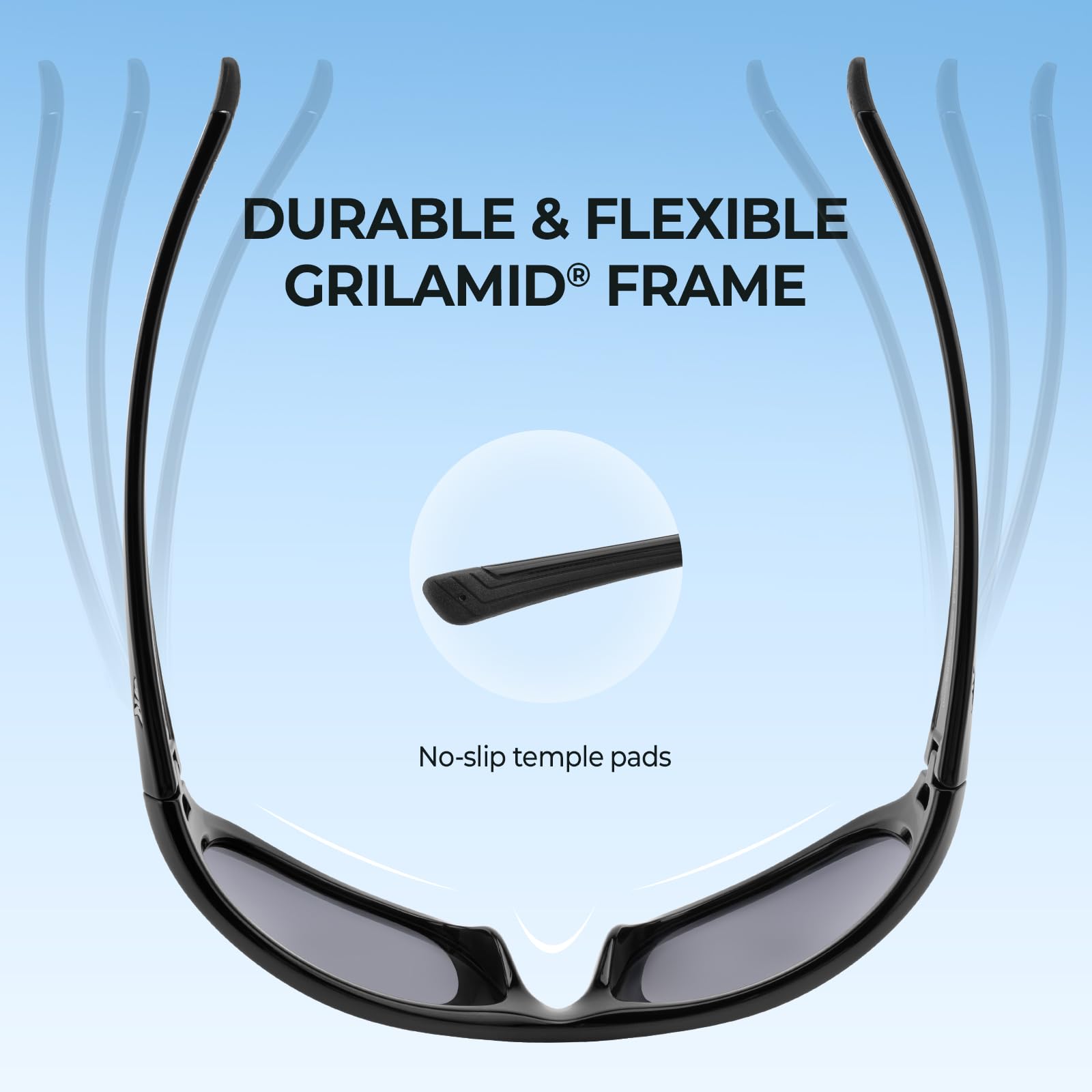 - PREMIUM FRAMES – Made from the same Grilamid material commonly used in military and medical applications, KastKing sunglass frames are lightweight, extremely flexible, and heat and UV resistant. Grilamid frames are well known for their astounding strength, lightweight, comfort, shape integrity, and impact resistance. This virtually indestructible ultra-lightweight and malleable material translates to an amazingly comfortable fit and the tacky temple pads prevent slipping.