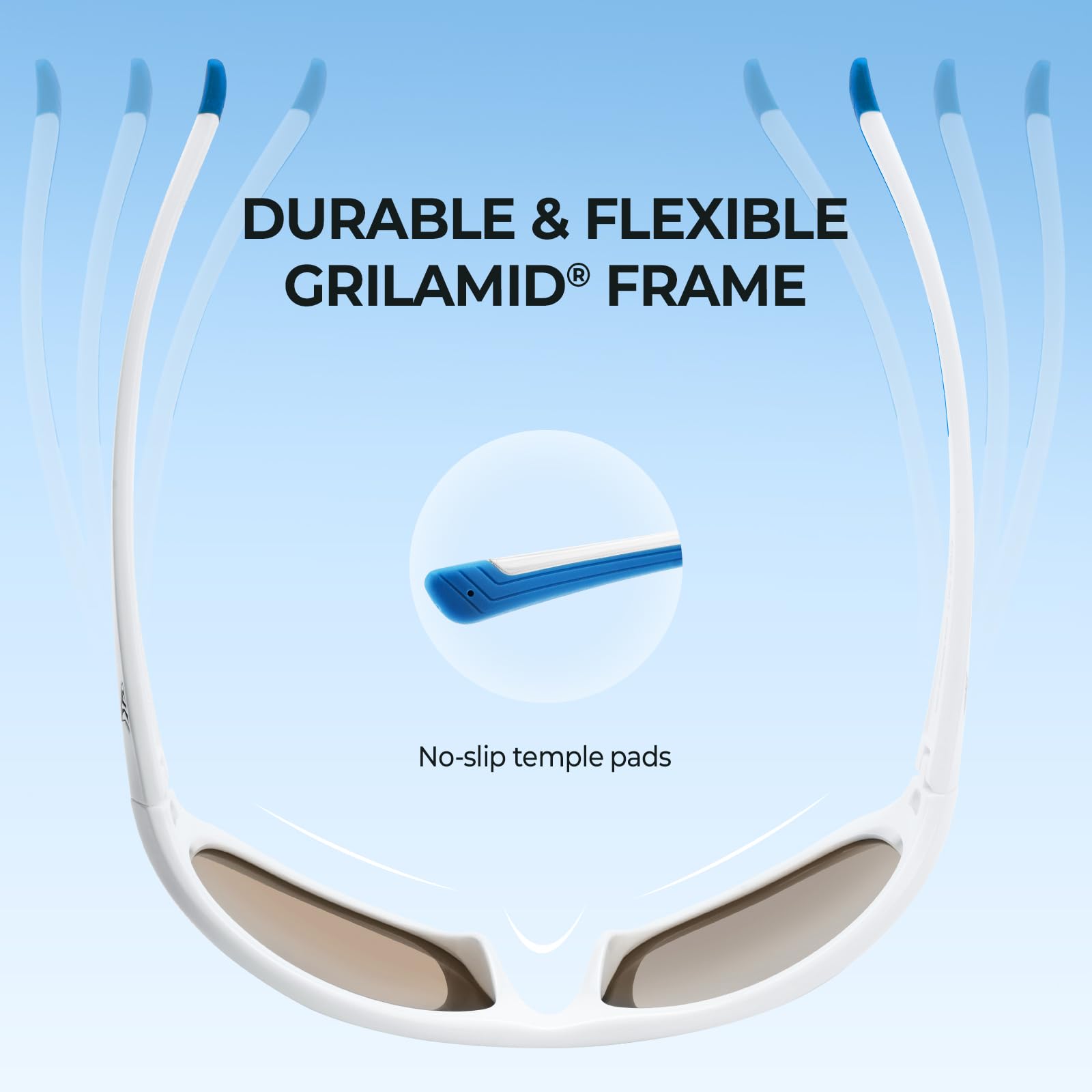 - PREMIUM FRAMES – Made from the same Grilamid material commonly used in military and medical applications, KastKing sunglass frames are lightweight, extremely flexible, and heat and UV resistant. Grilamid frames are well known for their astounding strength, lightweight, comfort, shape integrity, and impact resistance. This virtually indestructible ultra-lightweight and malleable material translates to an amazingly comfortable fit and the tacky temple pads prevent slipping.