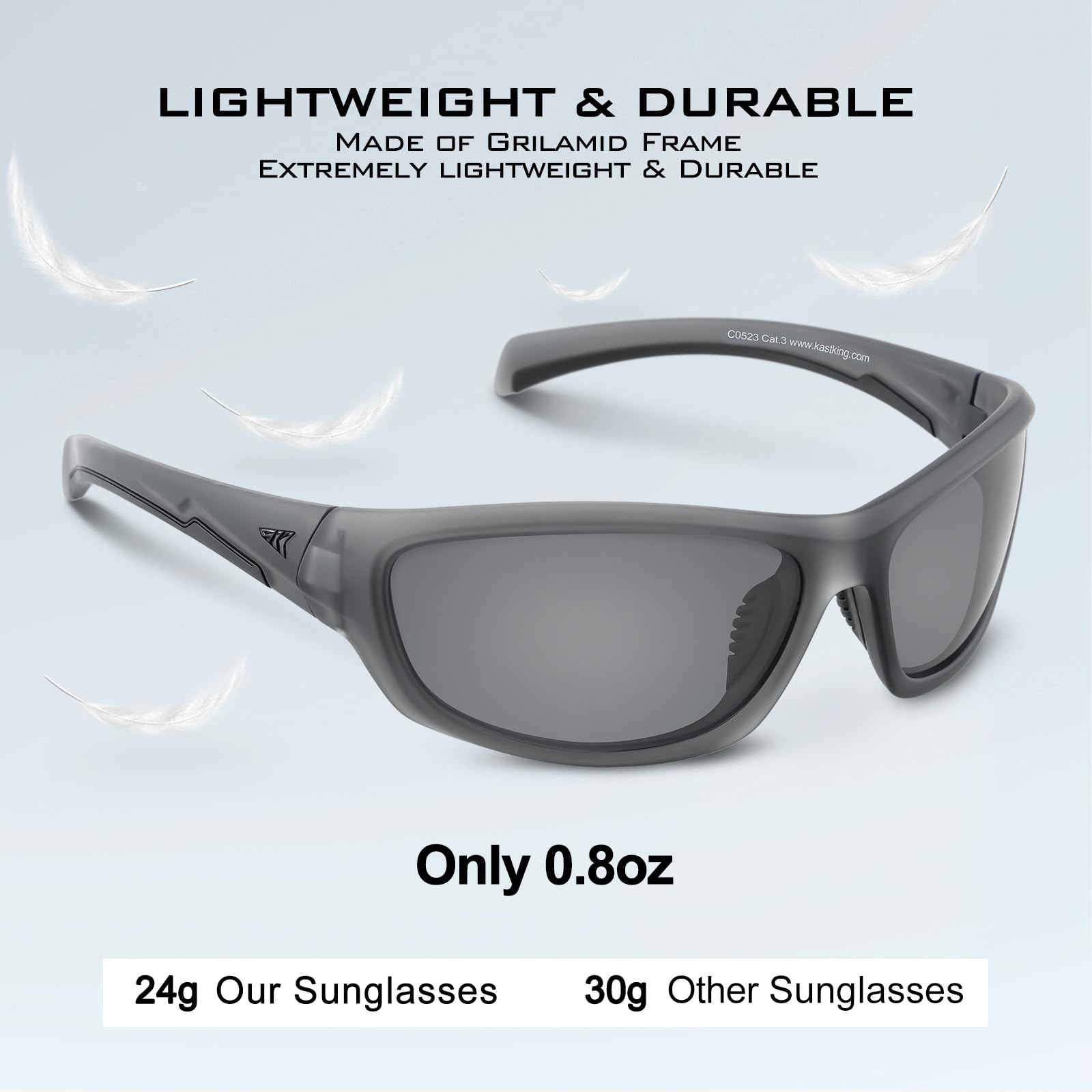 - PREMIUM FRAMES β Made from the same Grilamid material commonly used in military and medical applications, KastKing sunglass frames are lightweight, extremely flexible, and heat and UV resistant. Grilamid frames are well known for their astounding strength, lightweight comfort, shape integrity, and impact resistance. This virtually indestructible ultra-lightweight and malleable material translates to a very comfortable fit and the tacky nose and temple pads prevent slipping.