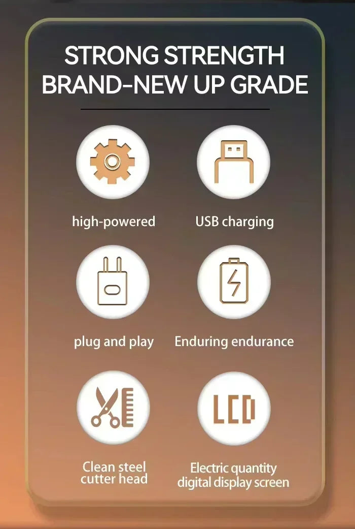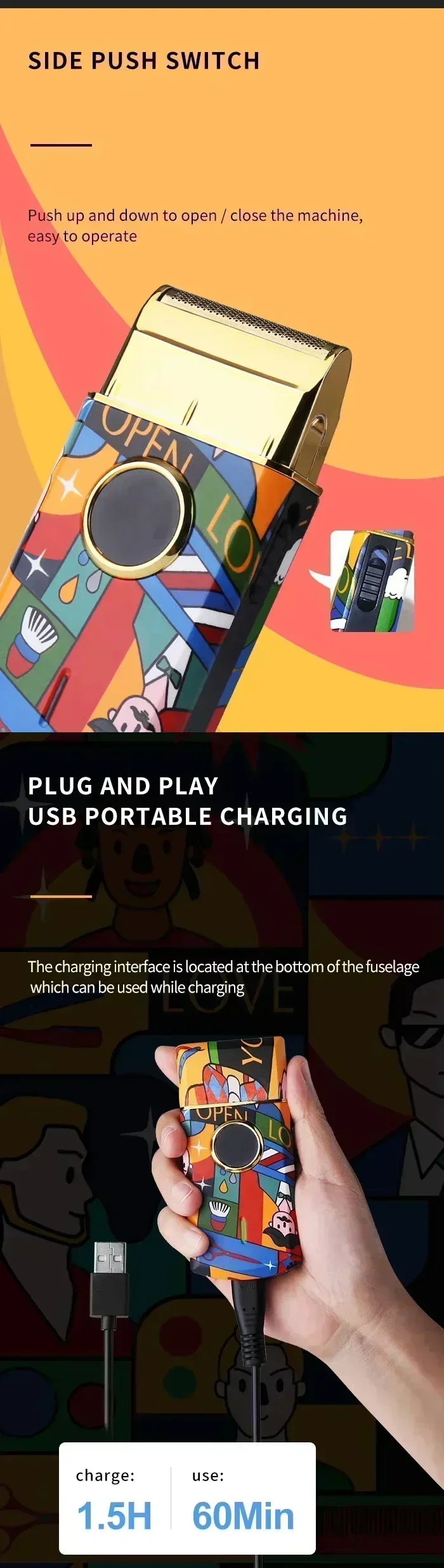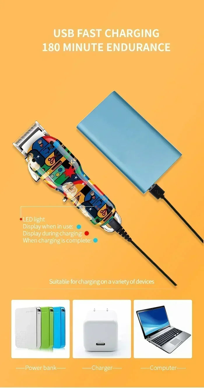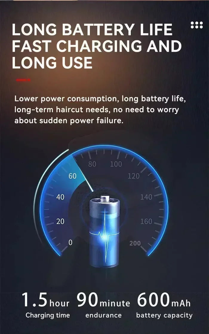 Function: wet haircut,dry haircut,Washing knives under water,fast charging,Charging indication