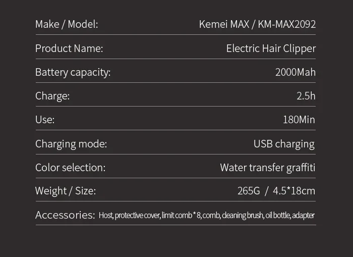 Kemei Model: Kemei KM-MAX2092 KM-MAX5090 KM-RS7098