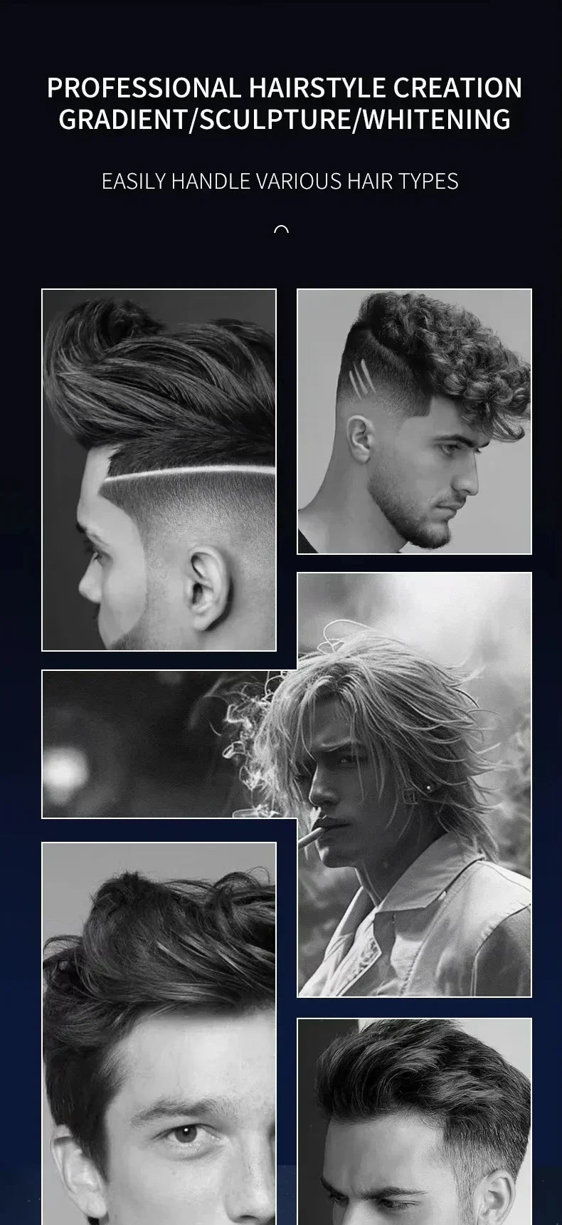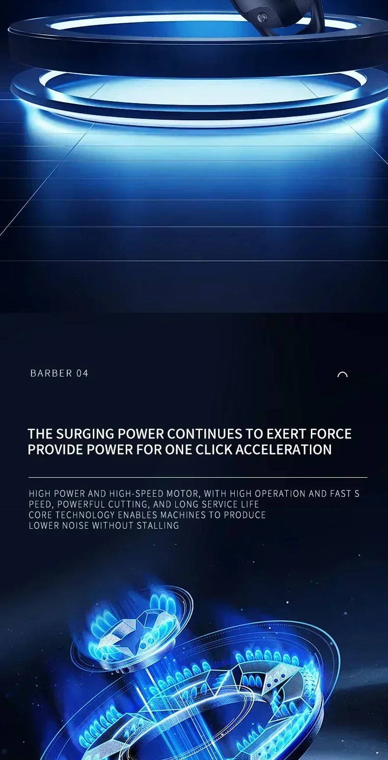 Function: wet haircut,dry haircut,Washing knives under water,fast charging,Charging indication
