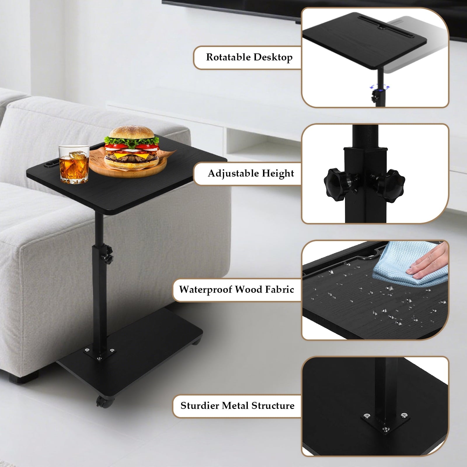 Upgrade your space with this versatile C-table! Adjustable 18-33' height, 360° swivel top fits sofas, beds & tubs. Dual-tier design holds 25kg—30×40cm anti-slip top + lower shelf. 0.3㎡ footprint, walnut finish suits small spaces. 3-in-1 coating (heat/water/scratch-proof), 2cm raised edges. 5-min tool-free setup, lifetime support—ideal for work, relax or gifting.