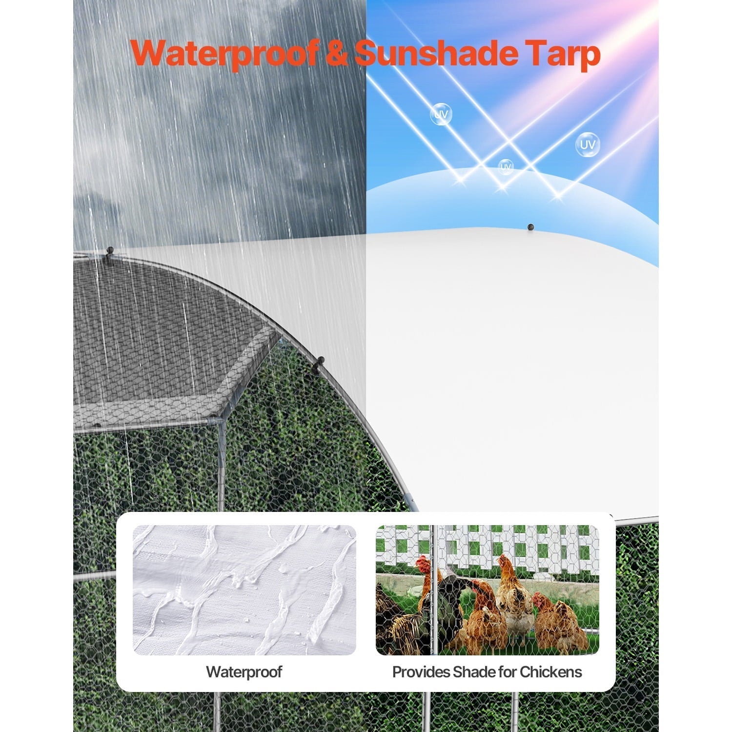 Constructed with 1' thick steel pipes and hexagonal protective mesh, this spacious chicken run provides a strong and secure environment for your poultry to freely roam.