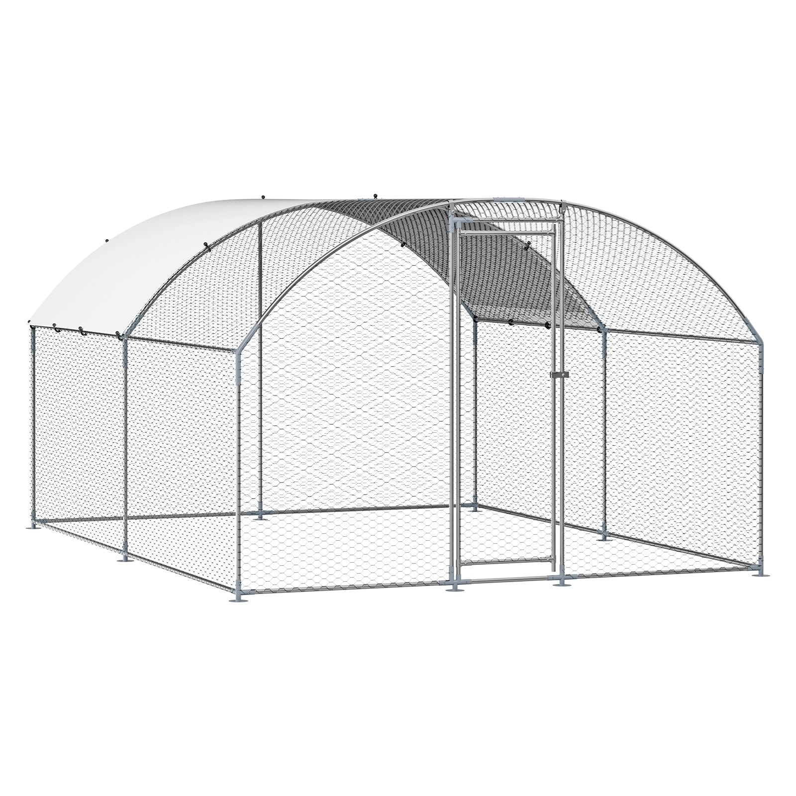 Crafted from galvanized steel with 1-inch thick pipes, this chicken coop offers optimal support and protection. Its spacious interior allows chickens to freely roam, while the PE canopy ensures effective weather protection. The wide doors and easy installation cater to a variety of farming needs.