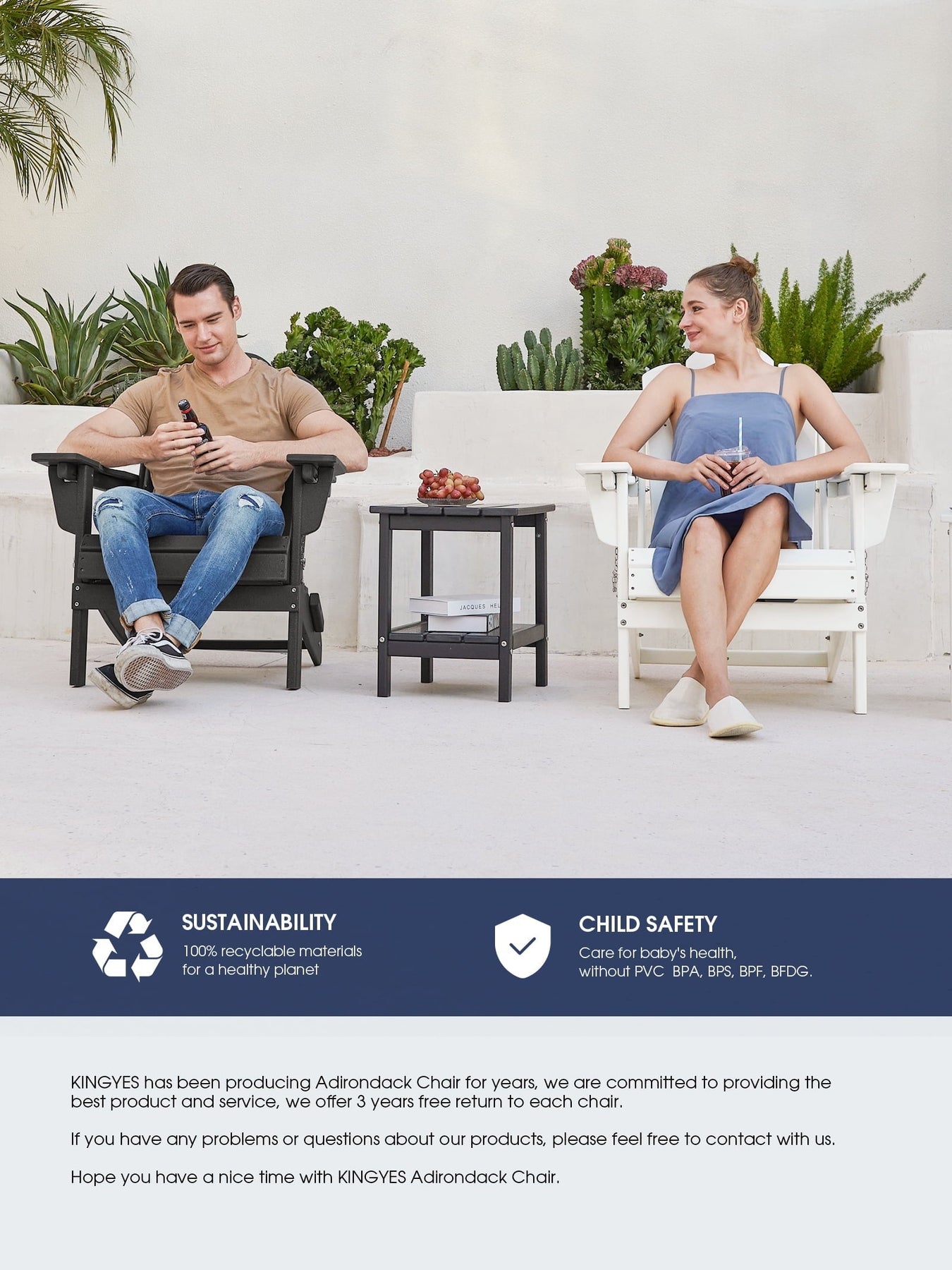KINGYES Adjustable Adirondack Chair is made of HDPE (High Density Polyethylene), which does not look like wood, but is more durable than wood and will not crack or fade when used in outdoor.