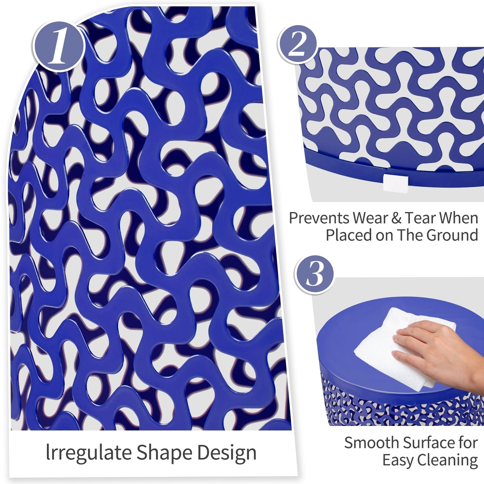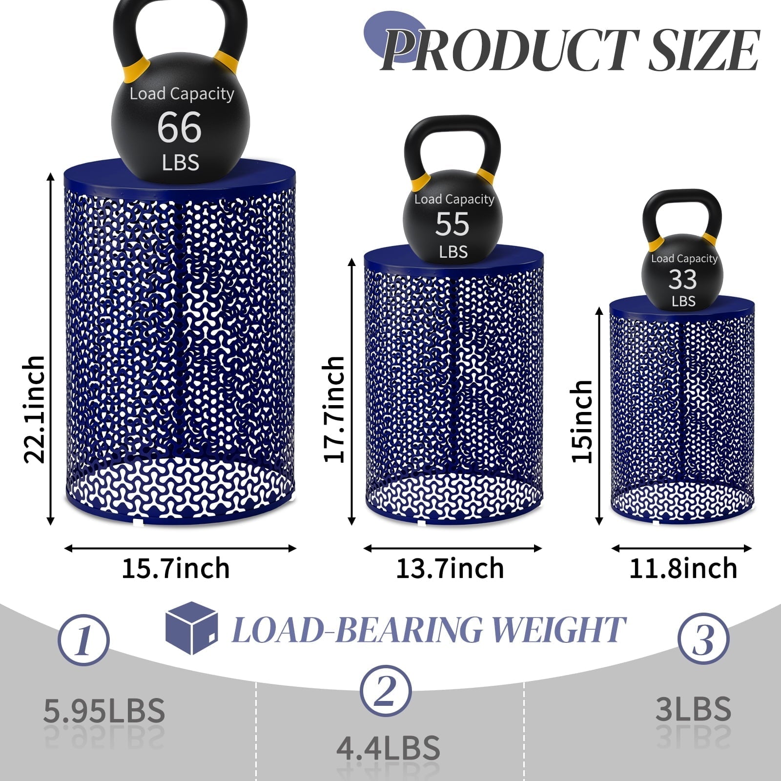 Enhance your space with the Ktaxon 3-Piece Stacking Side Table Set—perfect for patio, indoor, and outdoor use. These nesting end tables feature a durable metal construction with rust-resistant coating, ideal for gardens, balconies, and living rooms. The clover design cutout adds a stylish touch, casting beautiful light and shadow patterns. Lightweight yet sturdy, they function as side tables, plant stands, or nightstands. With three sizes (12, 14, 16 inch), this space-saving set is easy to clean and stack for storage. Upgrade your décor with this versatile, modern, and portable table set in blue!