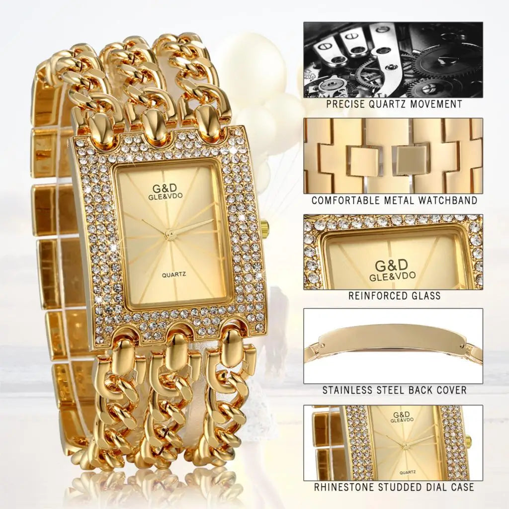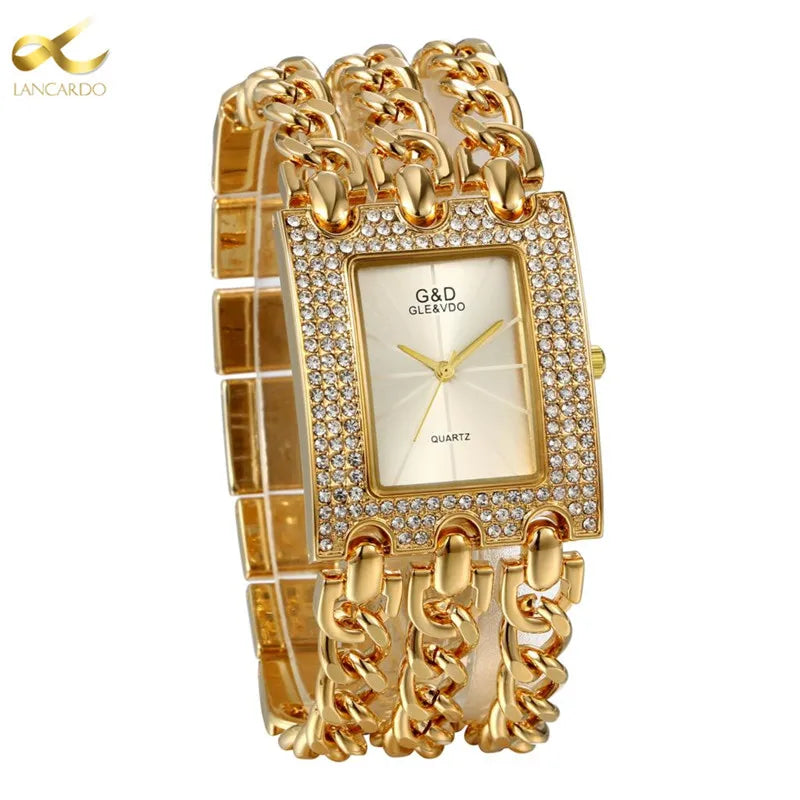 LANCARDO New Top Brand Luxury Women's Watches Alloy Clock Lady's Gold Strap Watch Fashion Reloj Female Quartz Wristwatch