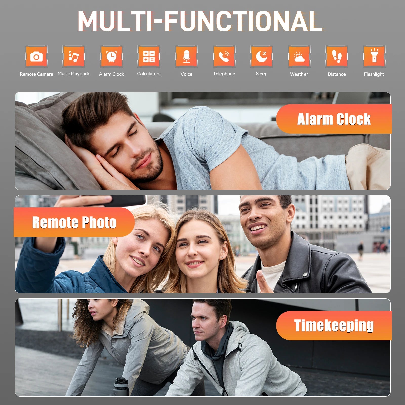 Function: fitness tracker,sleep tracker,Message Reminder,Call Reminder,Answer Call,Dial Call,Push Message,Big Three Needles,24 hour instruction,Chronograph,Alarm Clock,Calorie Counter,DIVER,Power Reserve,GMT Two Places,Perspective Window,week,Month,Heart Rate Tracker,Interactive Music,Noctilucent,Calendar,compass,Countdown,Calculators