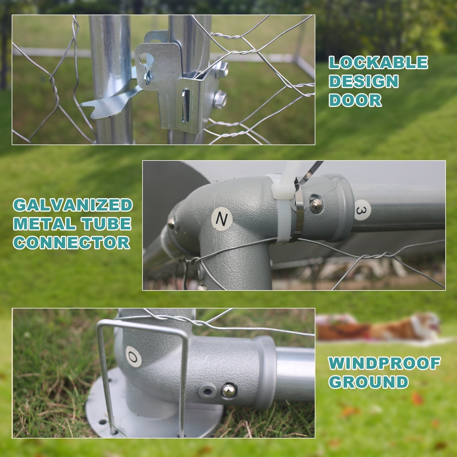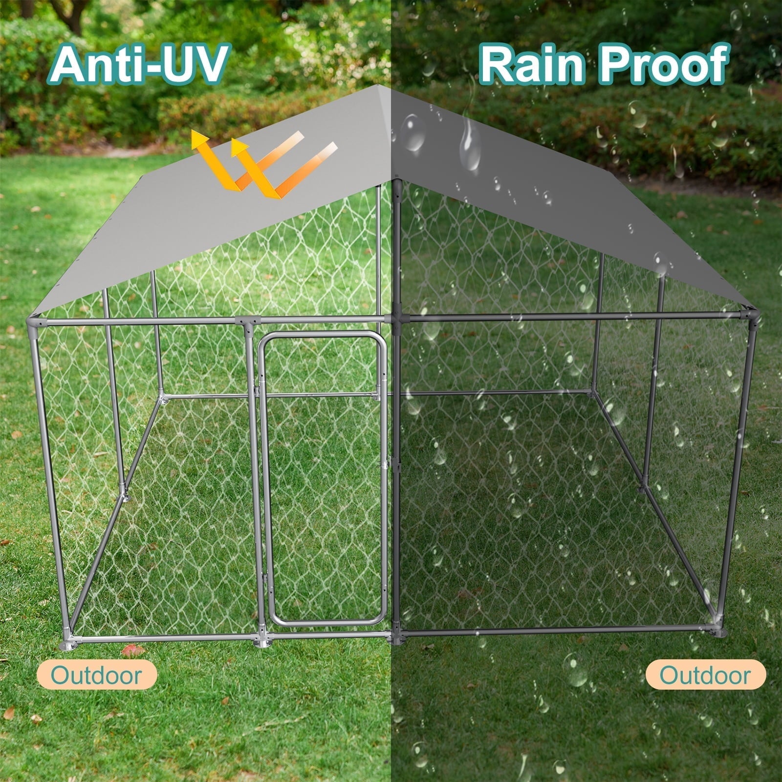 This is a high-quality pet fence suitable for all types of pets. It is equipped with an all-weather and UV resistant canopy, so you don't have to worry about your pet getting wet from rain or burning in the scorching sun. The sturdy and durable structure makes this fence even stronger after years of use. The design of grid lines provides your pet with excellent visibility and opportunities to approach the grass. The huge size provides enough space for your pet to play in our pet enclosure!