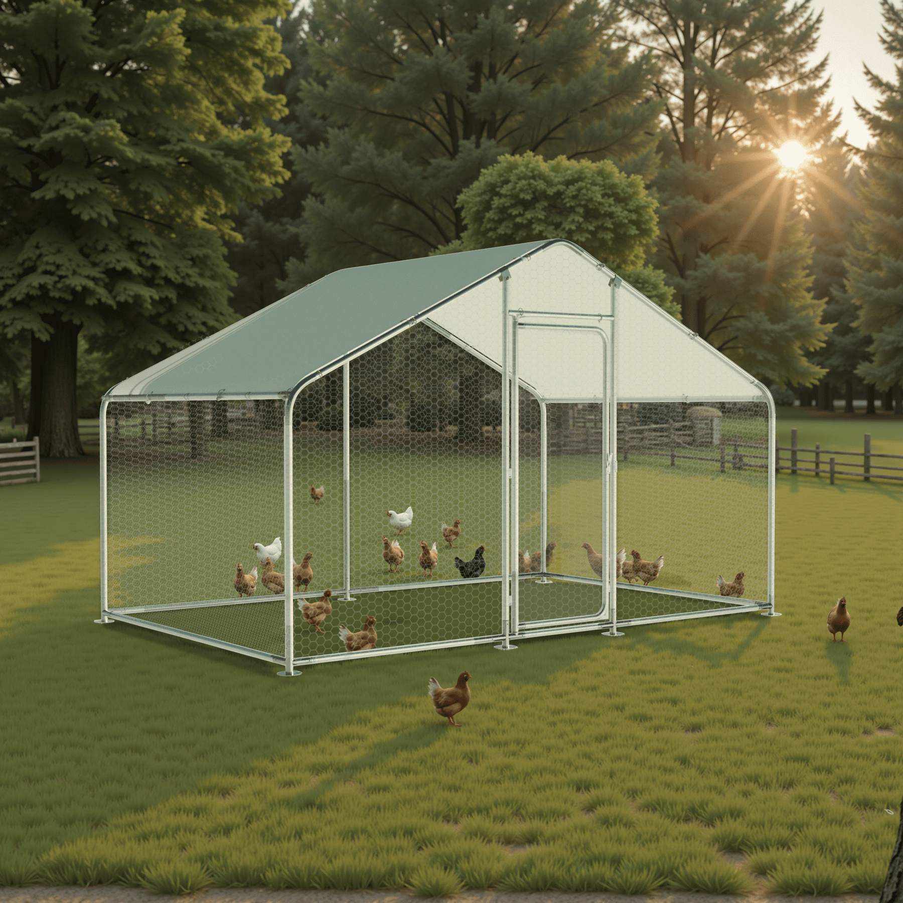 Leading the way in modern farming, our large metal outdoor chicken coop is designed for efficient farming and animal welfare!