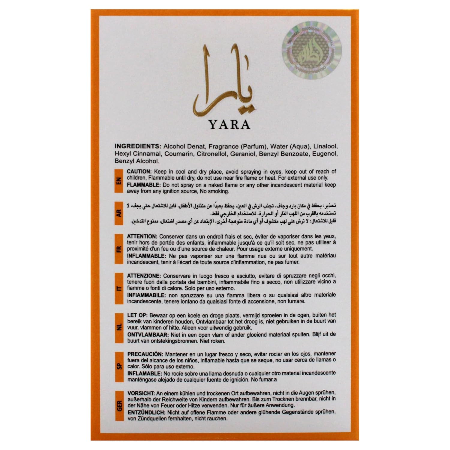 • Fragrance Notes – Yara: Opens with orchid, heliotrope, and tangerine; transitions into a heart of gourmand notes and tropical fruits; settles with vanilla, musk, and sandalwood
