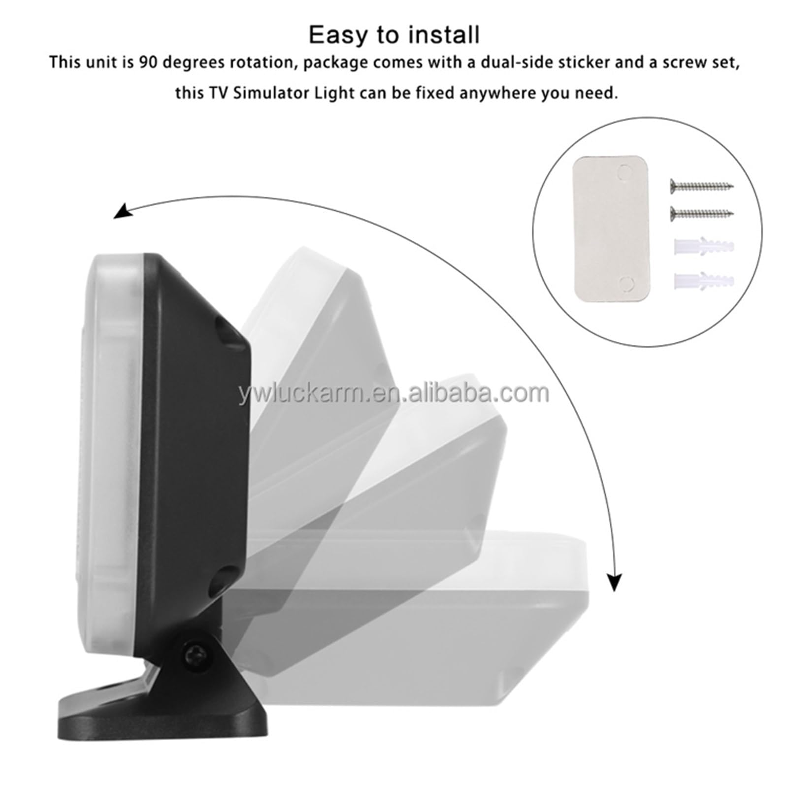 - Easy Installation and Usage: Powered by USB (cable included) or a power adapter (not included), this TV simulator is easy to install and use. Simply connect it to a power source and switch it on. It can be placed on a shelf, table, or easily mounted on a wall using the base