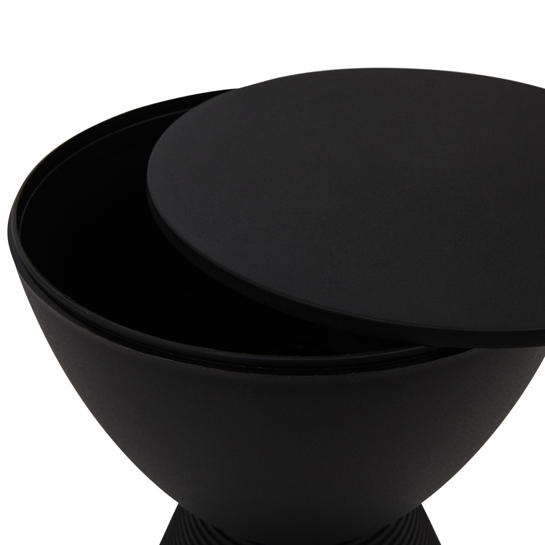 Elevate your living space with the LeisureMod Ribbed Hourglass Side Table. Featuring a stylish hourglass silhouette with flowing curves and a ribbed base, this durable polypropylene table supports up to 150 lbs and adds a touch of modern elegance to any room. The lift-off top reveals a hidden storage compartment, perfect for keeping remotes, magazines, and other items organized. Measuring 16.75' H x 11.75' W x 11.75' D, this compact and lightweight table is easy to move and reposition, making it ideal for both indoor and outdoor use. With its UV-protected finish, this versatile side table is ready to use right out of the box, no assembly required.
