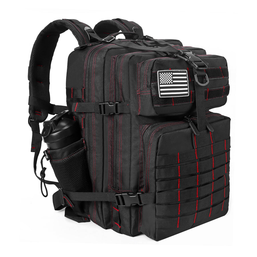 LHI Military Tactical Backpack for Men and Women 45L Army 3 Days Assault Pack Bag Large Rucksack with Molle System - Black with Red Line