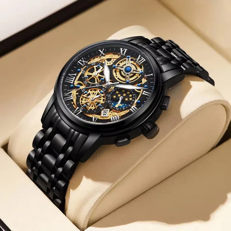 Feature: STOP WATCH,Shock Resistant,Luminous,Auto Date,Chronograph,Complete Calendar,Moon Phase,Water Resistant,luminous hands