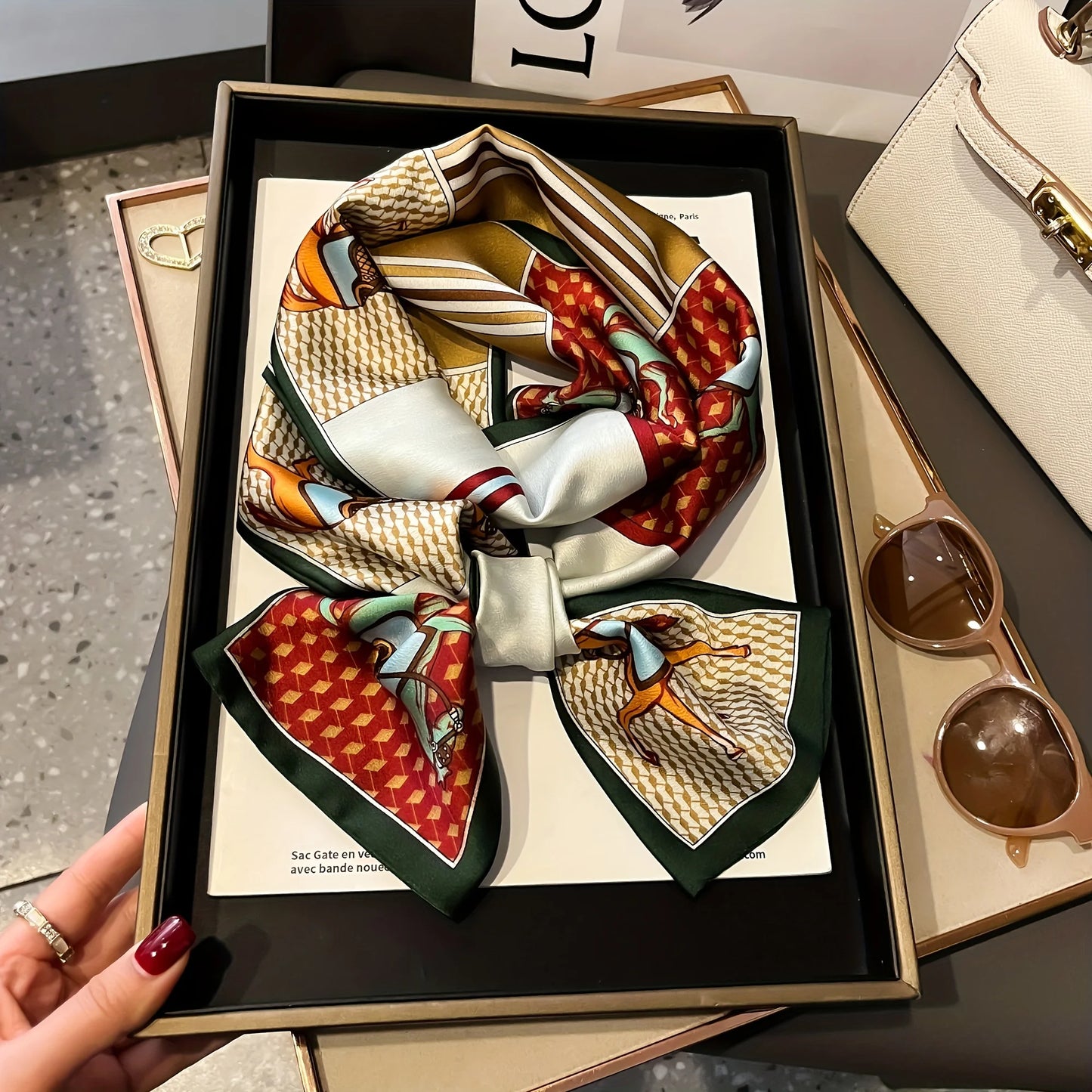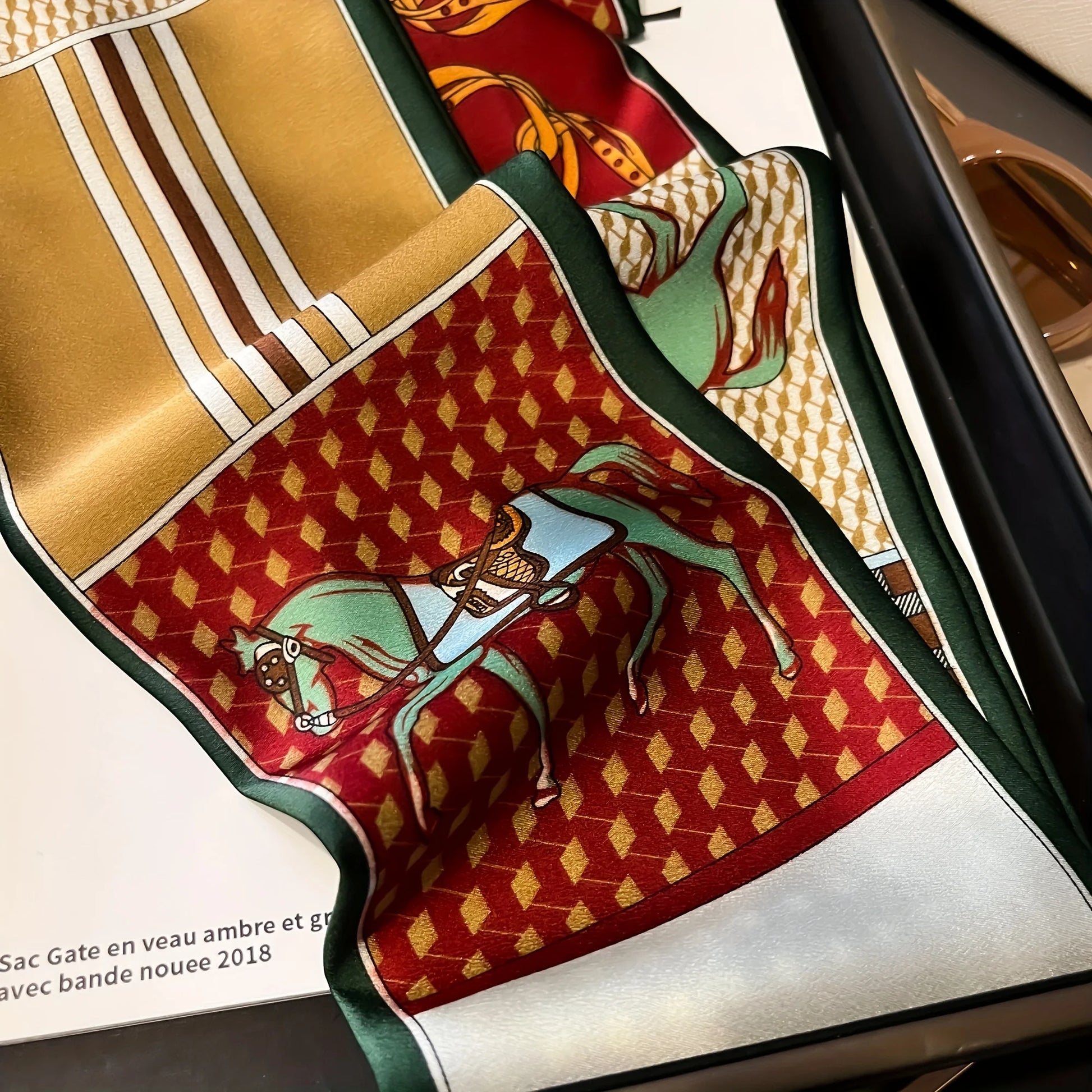 Luxury Horse Pattern Imitation Silk Scarf Headband Neckerchief Foulard Female Hair Scarfs Neck Tie Skinny Scarves Soft Satin