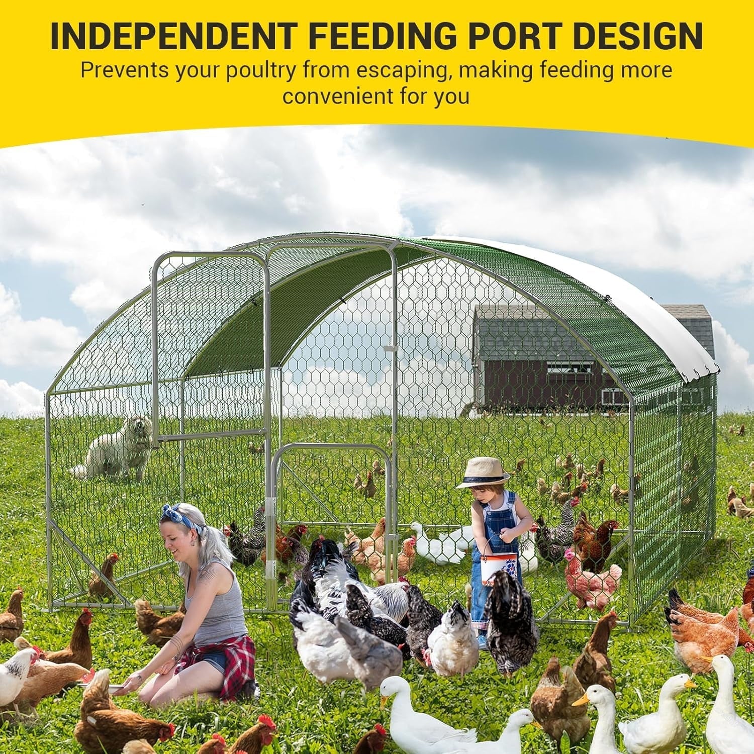 Name: Large Metal Chicken Coop, Metal Chicken Run with Reinforced Triangle Support & Double Doors, Outdoor Walk-in Poultry Cage for Yard