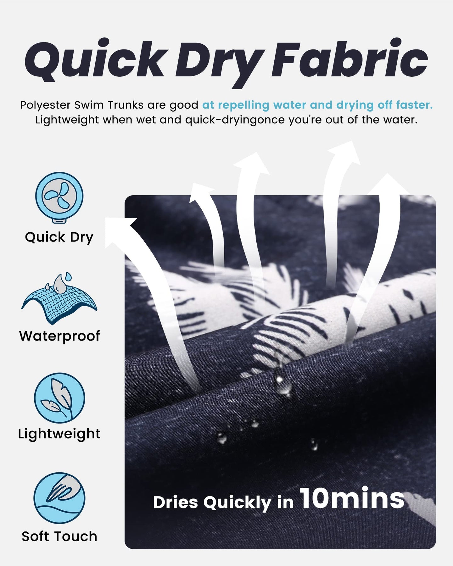 - 🌊Mens Quick Dry Swim Trunks: Our Brand Men's Bathing Suits Or Swim Trunks All Get Great Quick Dry Function. Normally Take 5 To 10 Minutes, Shorts Will Dry Already. Mens Swim Trunks With Pockets: The Board Shorts All Get Three Pockets. Two Beside And One In The Backside. The Backside Velcro Pocket With Drainage. BTW, It Is Mens Elastic Waist Swim Trunks And Also Mens Drawstring Swim Trunks.