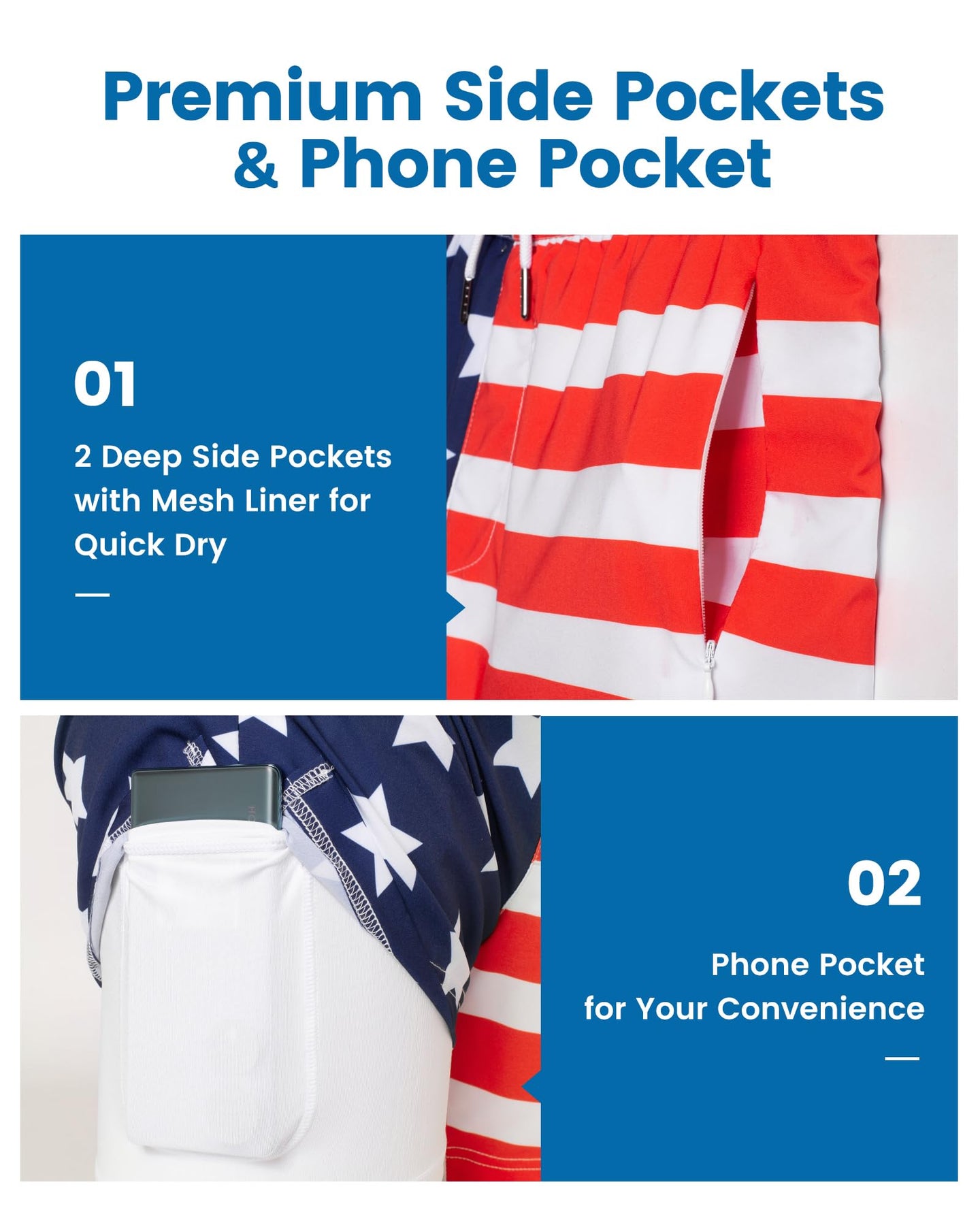 - Quick Dry Stretch Fabric: Made of 90% polyester and 10% spandex,. The fabric is truly flexible and comfortable and doesn't constrain your movement. It dries quickly, so you don't have to sit around with wet pants after swimming.