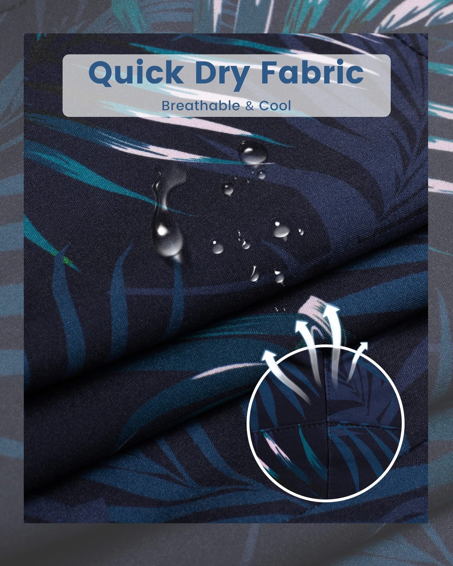 - Quick Dry Stretch Fabric: Made of 90% polyester and 10% spandex,. The fabric is truly flexible and comfortable and doesn't constrain your movement. It dries quickly, so you don't have to sit around with wet pants after swimming.