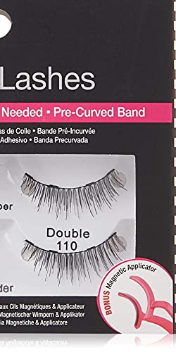 Details: Eye-Catching Lash Design These upper and lower eyelashes are made with high-quality synthetic fibers, so they're lightweight, durable, and comfortable to wear. The DOUBLE LASH 110 is designed with a rounded lash profile that's longer in the center and flaunts shorter on the inner and outer corners, which opens eyes for a rounder effect and lifts the appearance of your own lashes enhancing their natural allure without overpowering. fearlessly gives your lashes a flirtatious effect without going overboard. Open up your big, bright, beautiful doe eyes!