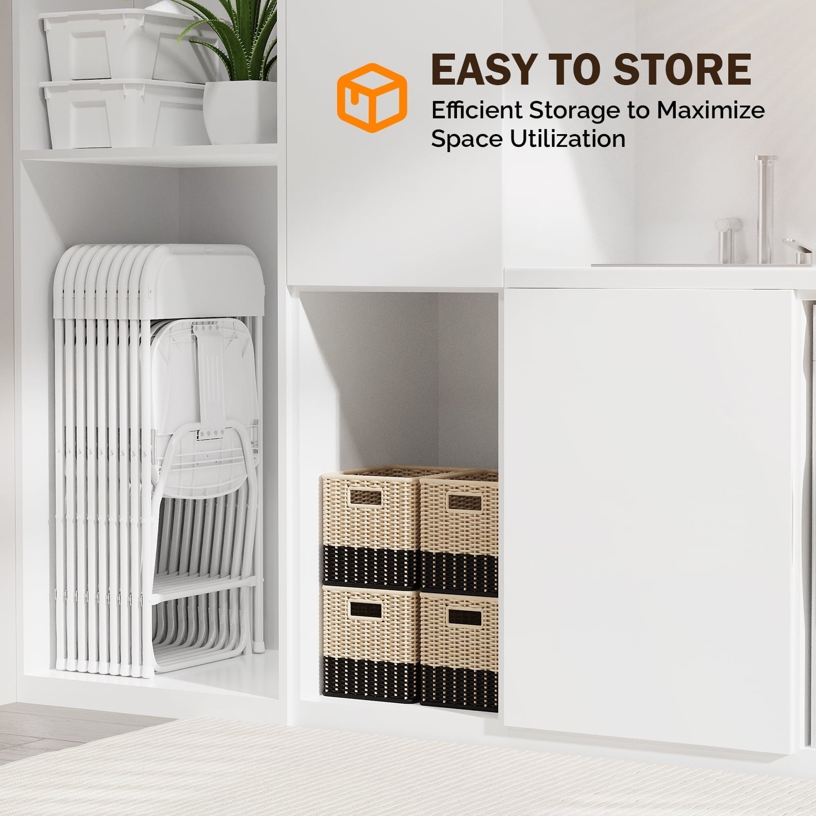 - Ultimate Space Saver: Effortlessly fold flat and lock securely for compact stacking. Stores neatly in closets, garages, or venues, maximizing your space.