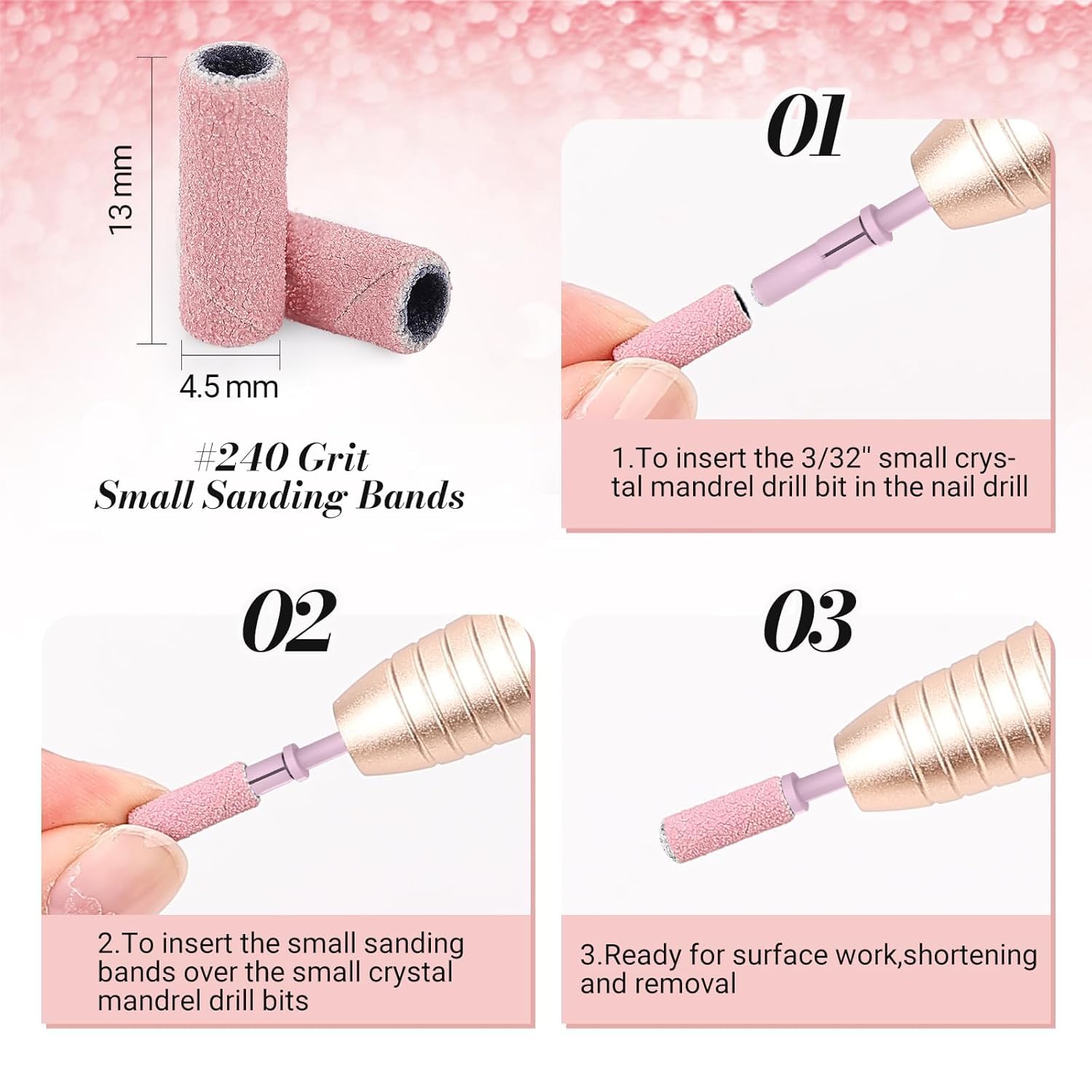 - MelodySusie the First Ever 3.1MM Small Sanding Bands | Color: Pink | Grit: 240 Extreme Fine | Quantity: 120Pcs. (Not include small mandrel bit)