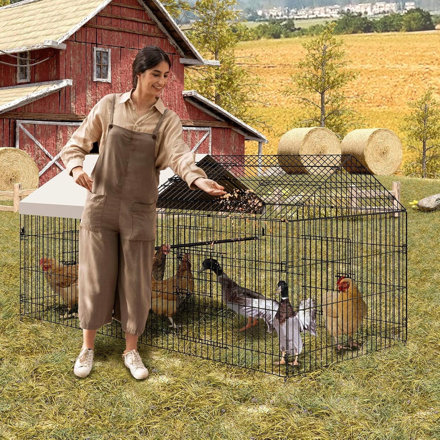 - Sturdy Construction: Built from durable metal, the chicken coop run provides a secure environment for your poultry. Perfect for outdoor use, it offers a safe space for chickens, ducks, or quails to roam freely while protecting them from enemies.