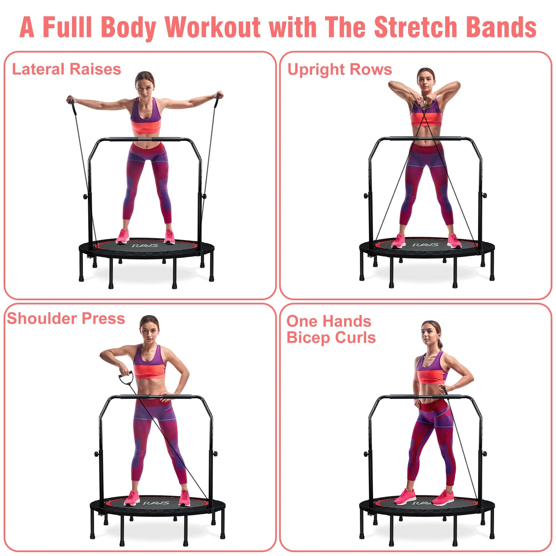 - Integrated Stretch Bands: Our exercise trampoline comes equipped with tension ropes that require users to coordinate their bodies by grasping and controlling the bands. This feature enables you to adapt to different speeds, forces, and directions of movement, facilitating upper limb, core, and lower limb strength training. Embrace the added challenge and achieve a more effective workout