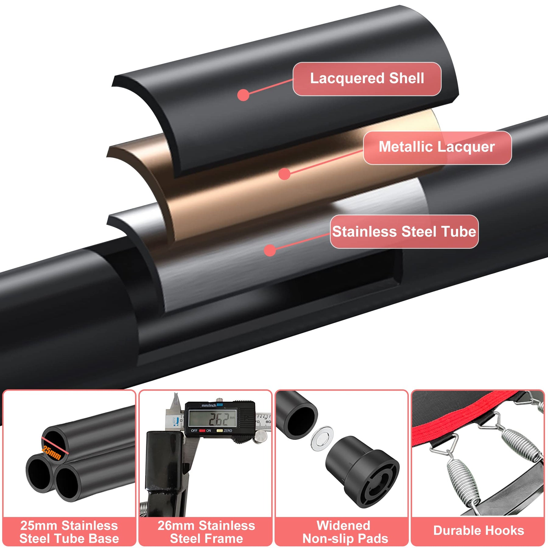 - Versatile Exercise Options: Not limited to basic up-and-down jumping, our trampoline is perfect for a wide range of dynamic movements, including rotations and flips. It serves as the ideal sports equipment for comprehensive whole-body workouts, allowing you to engage in various exercises and maximize your fitness potential