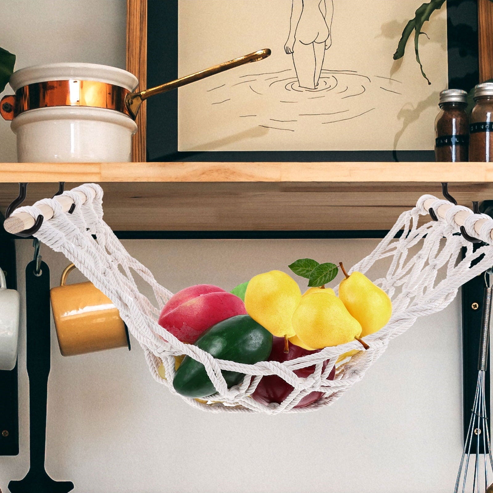 - Create a feeling of joy for your family, this will be a good mom It can be easily hung under cabinets or shelves to free space It is very versatile and can be very useful in an RV, boat, camper, small house or apartment-fruit hammock
