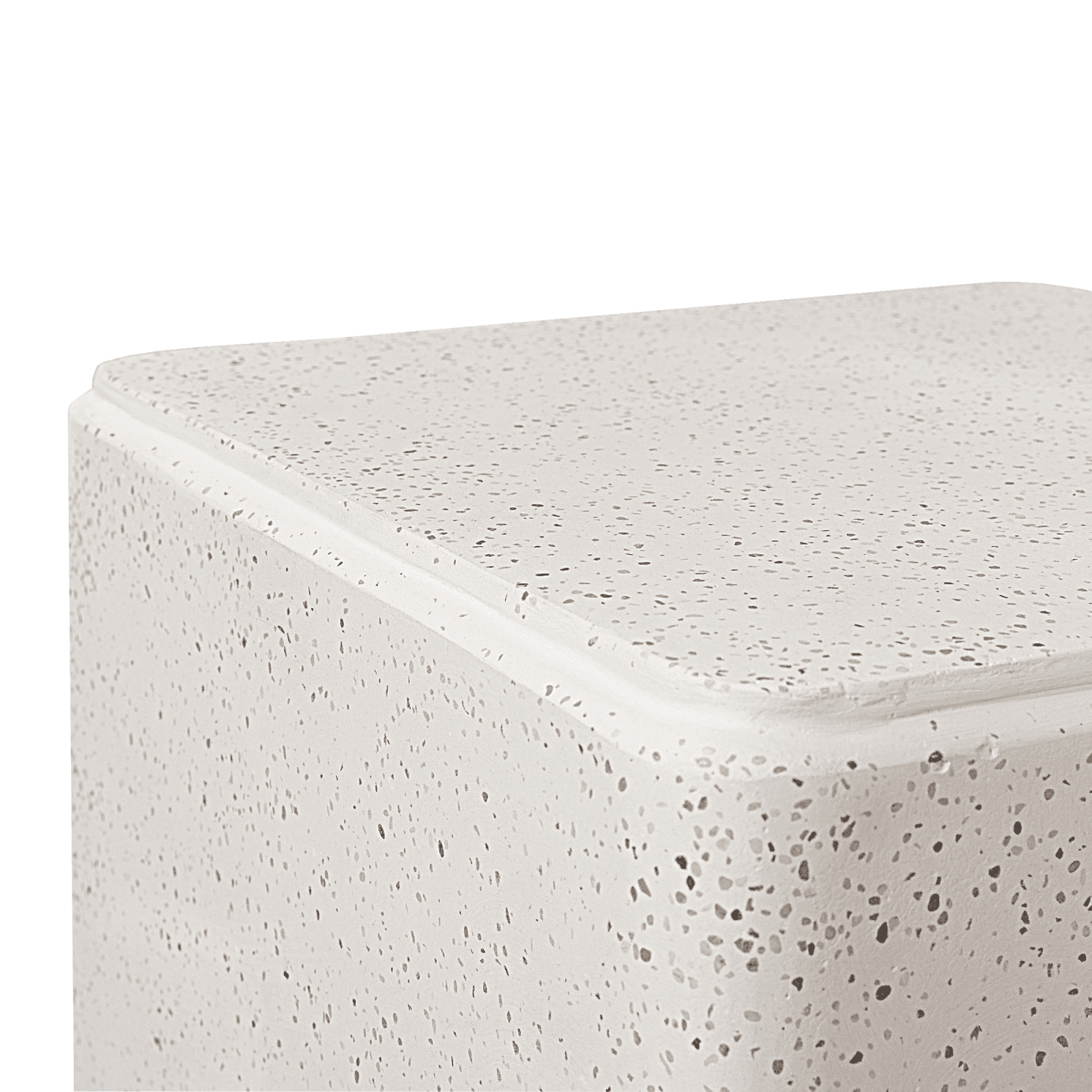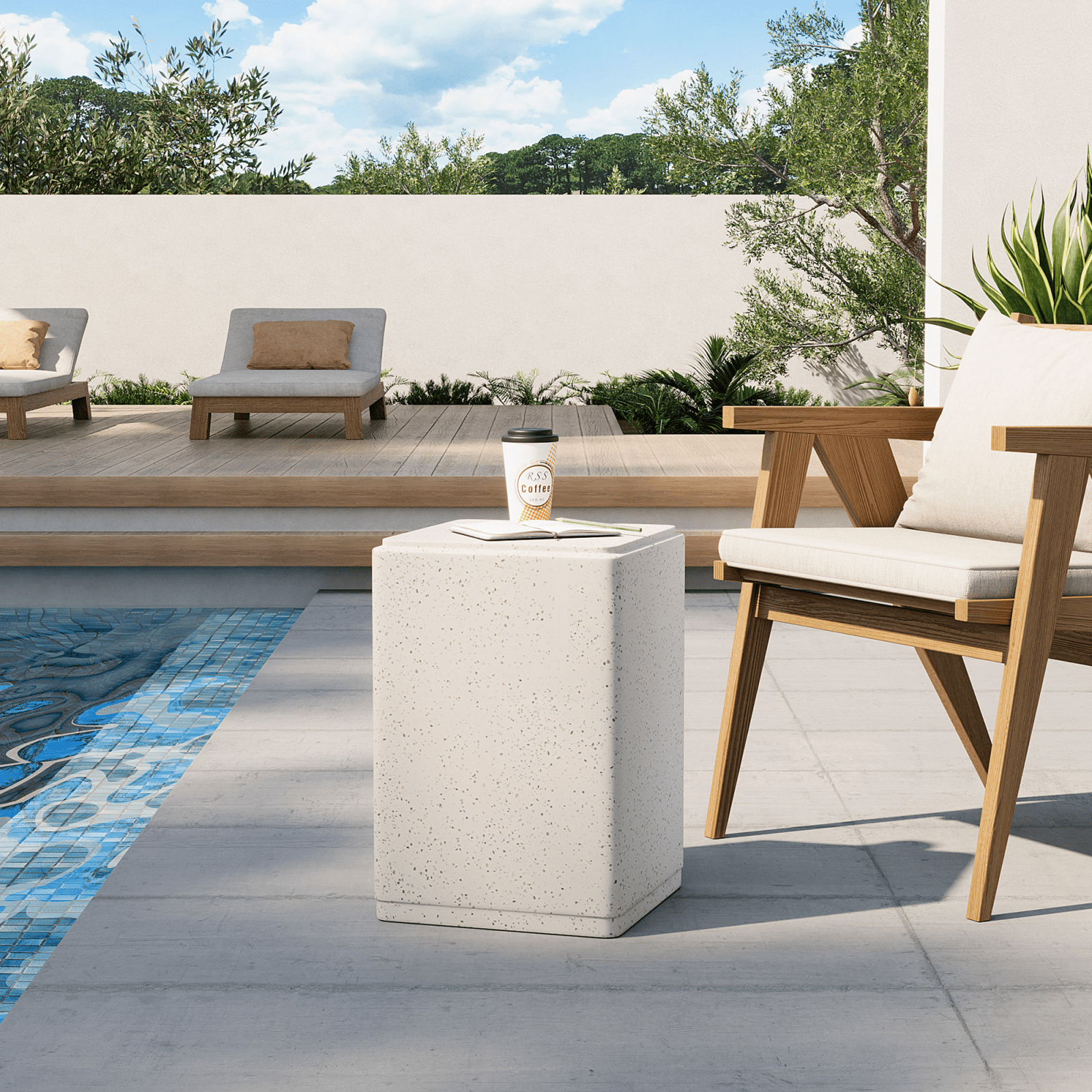 This simple and modern concrete outdoor side table features a unique handcrafted surface and square shape. It is both a functional piece of furniture and a decorative work of art. Its high-quality concrete material ensures durability while remaining lightweight and easy to move. The smooth surface design is easy to clean and only requires a light wipe to keep it tidy. No installation is required and it is ready to use upon arrival, making it an ideal choice for home and outdoor decoration.
