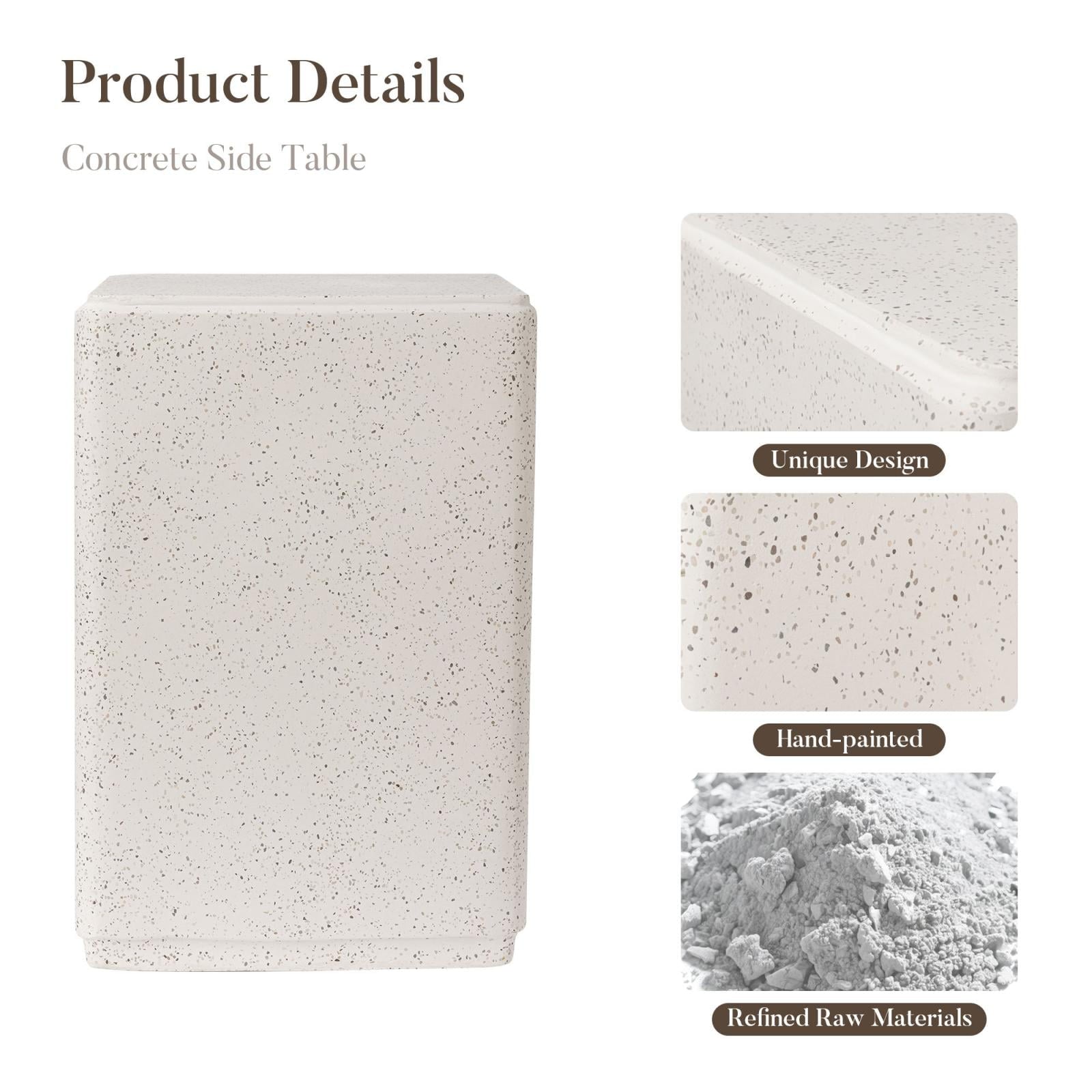 MOALCOFER Outdoor Side Table,Rectangle Concrete End Table with Spotted for Patio,White